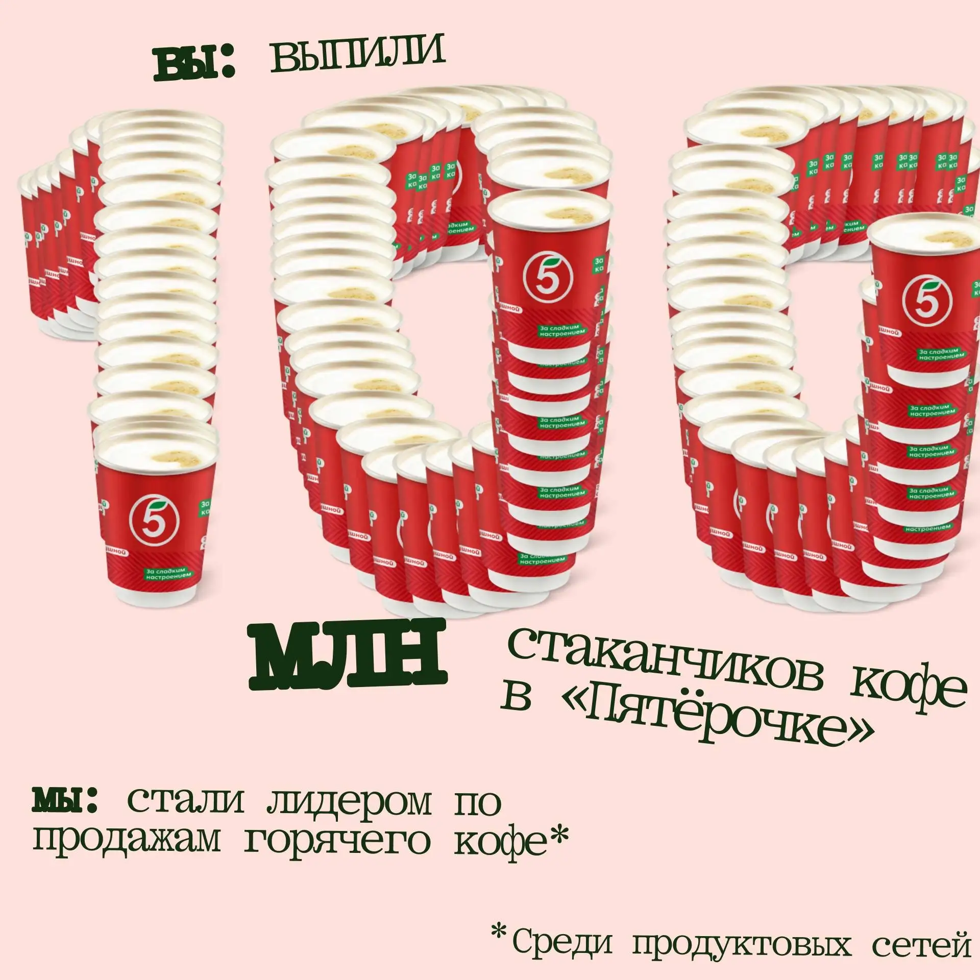Что это значит? На этой шестидневной рабочей неделе без кофе прожить непросто. У нас есть про него новость! «Пятёрочка» стала лидером по продажам горячего кофе среди продуктовых сетей.