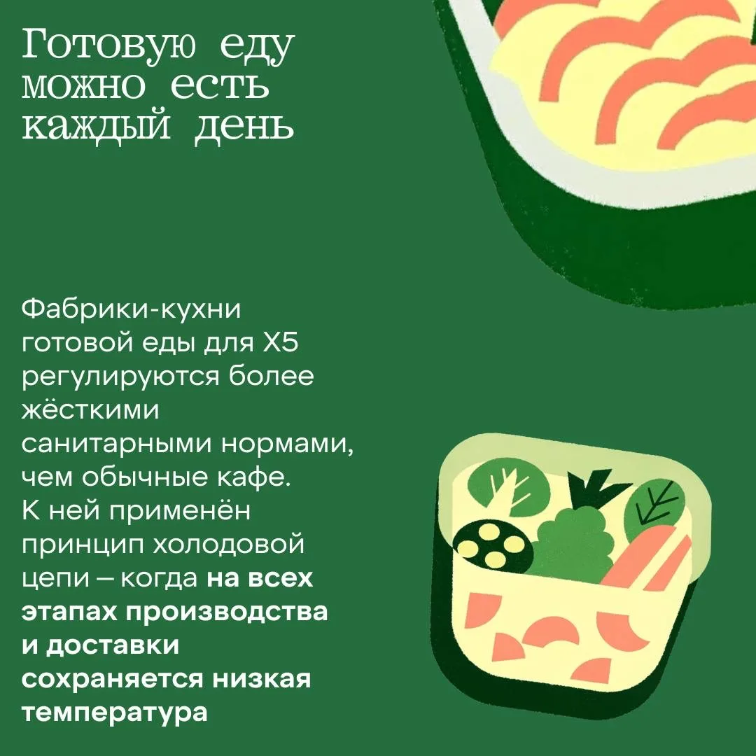 То самое спокойствие, когда берёшь готовое блюдо и знаешь — за его качество можно не переживать. Ведь за ним стоит целая система Х5 и множество экспертов, которые гарантируют лучшее: поставщиков, ингредиенты, условия хранения и транспортировки, лабораторные тесты.