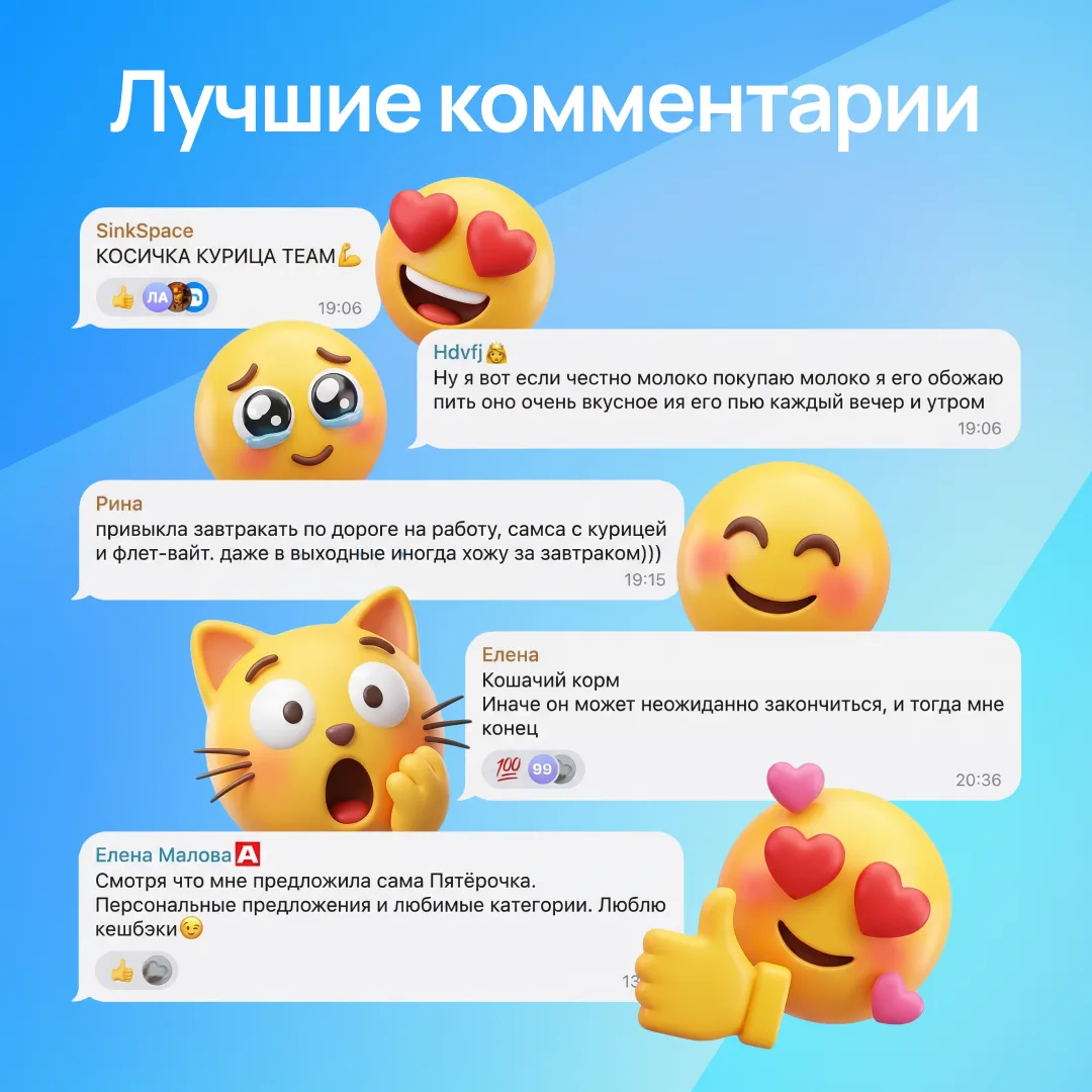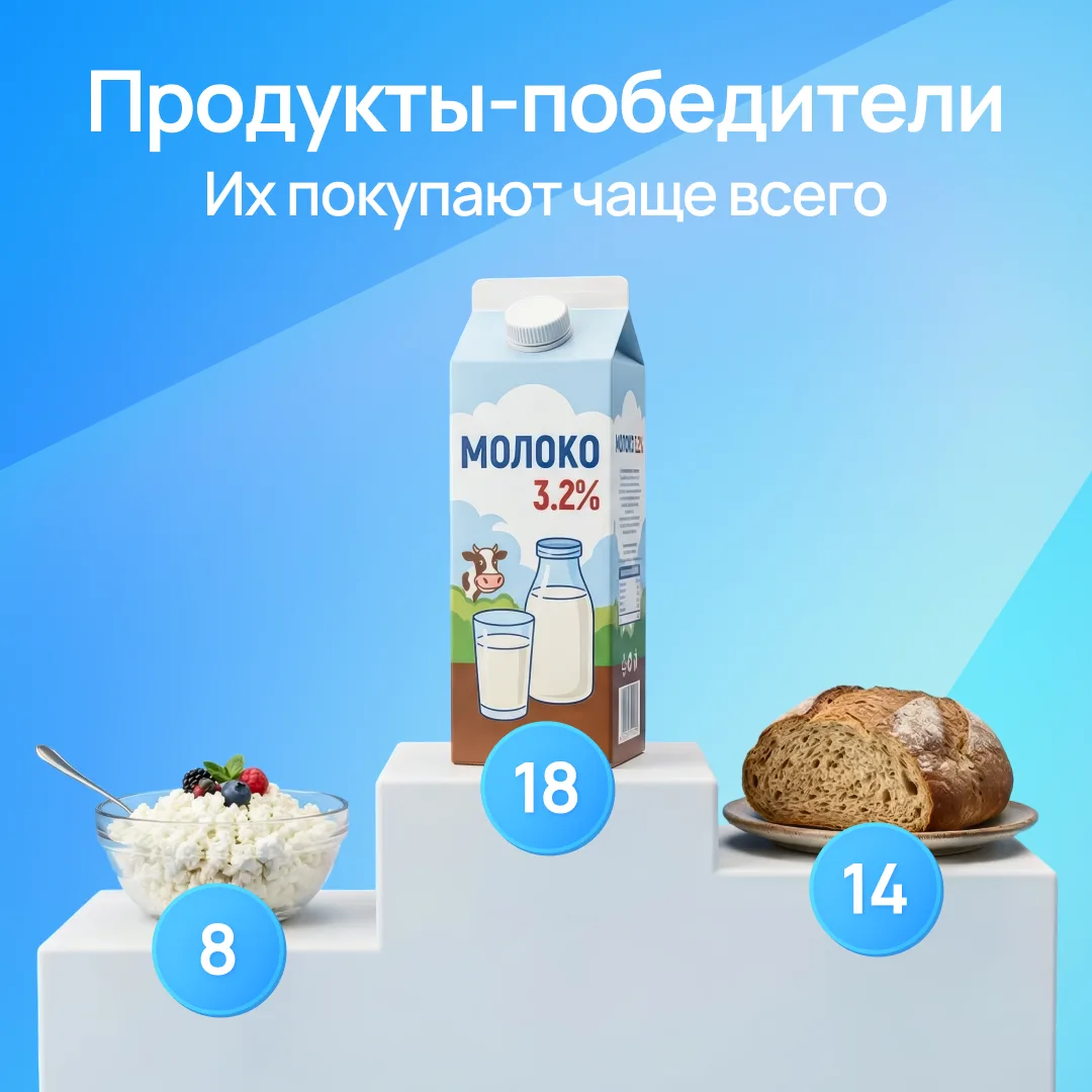 Недавно мы спросили наших пользователей о продуктах, которые просто невозможно обойти стороной, когда заходишь в «Пятёрочку» — листайте карточки и смотрите нашу статистику!