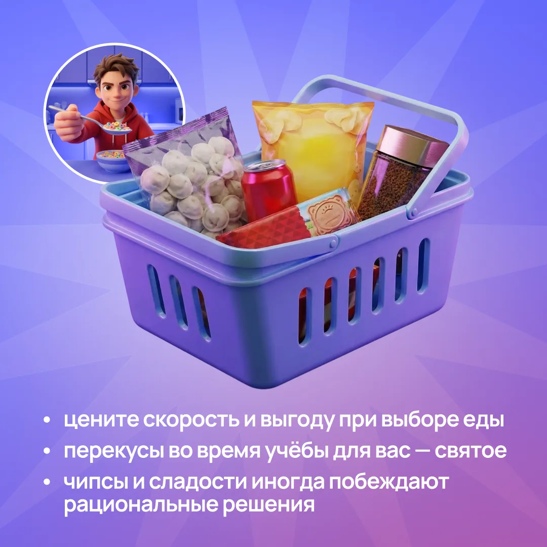 Кто-то выбирает полезные продукты, кто-то — быстрые перекусы, а кто-то всегда берёт что-нибудь вкусное к чаю.