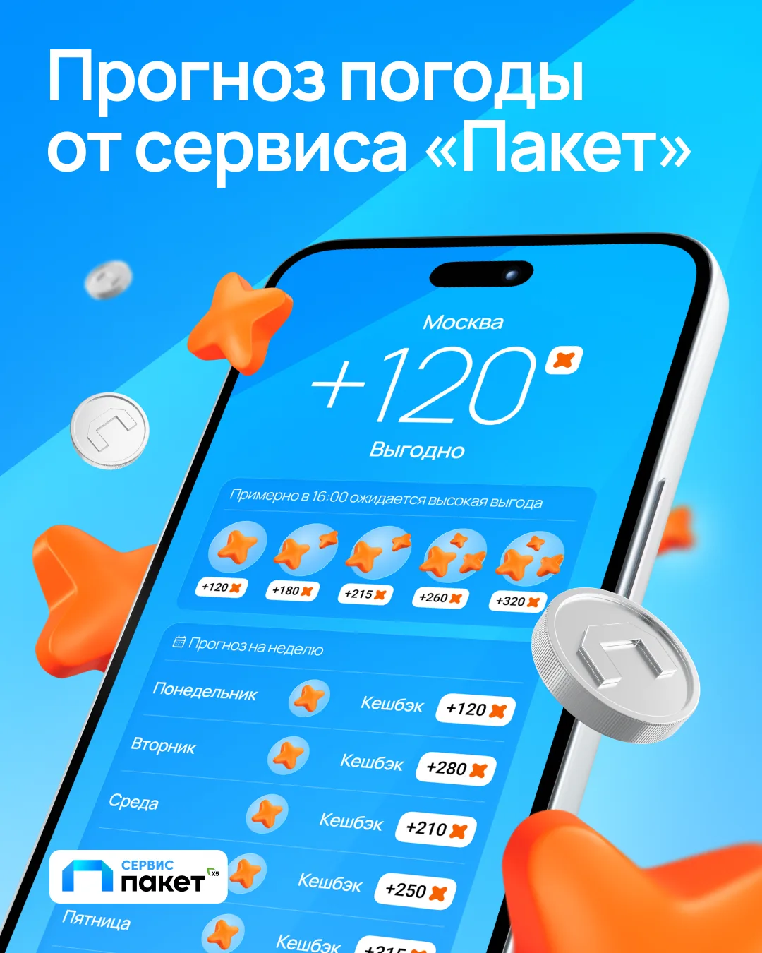 Следите за прогнозом и не упускайте удачные моменты с сервисом «Пакет» — с ним погода всегда будет на вашей стороне 😉