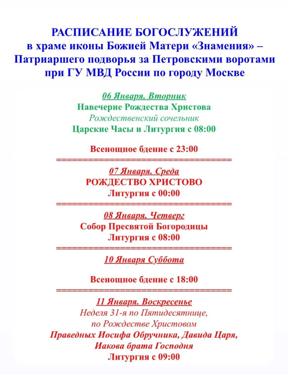 - Воскресение, 11 января 2026 года: