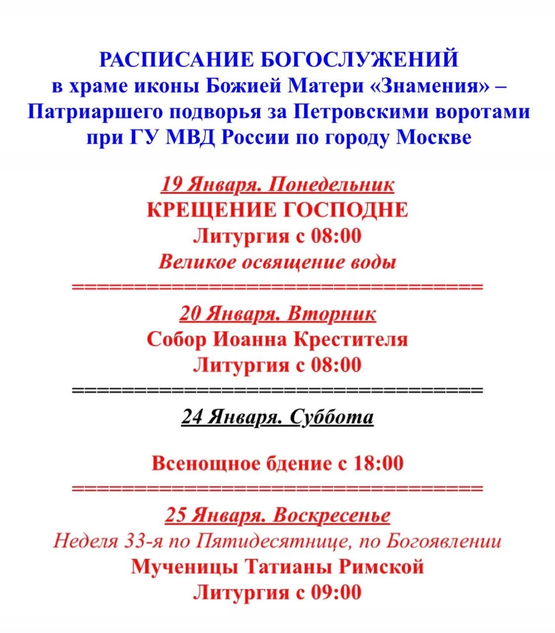 - Воскресение, 25 января 2026 года: