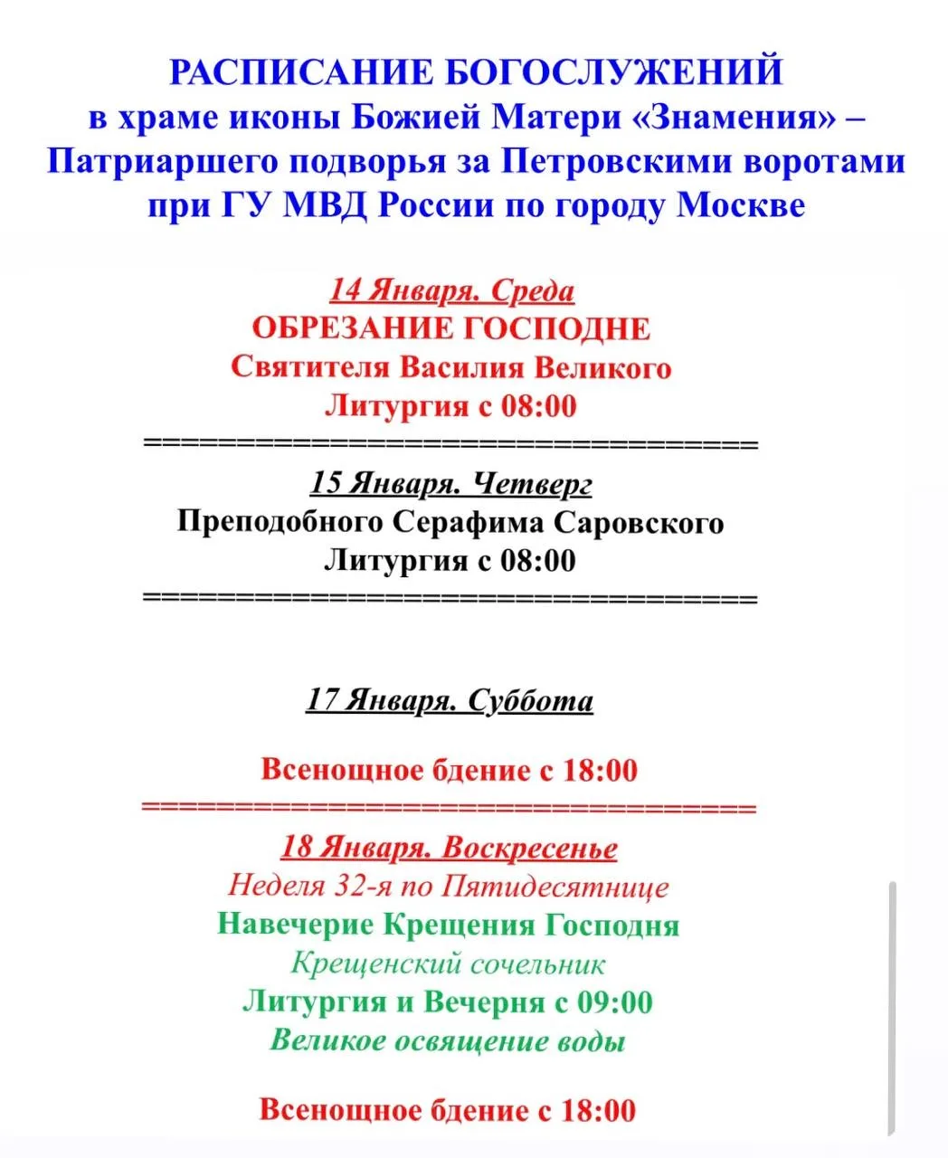 - Воскресение, 18 января 2026 года: