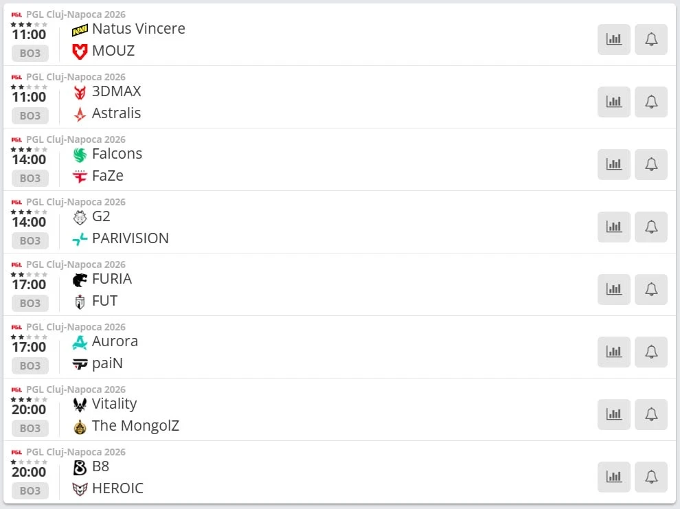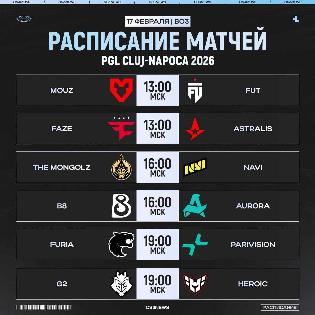 🗓 Расписание сегодняшних матчей 🇷🇴 PGL Cluj-Napoca 2026