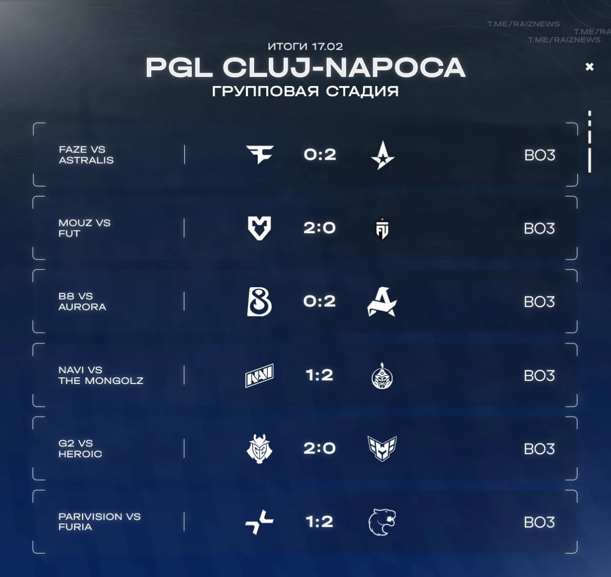 🇪🇺 FaZe, 🇺🇦 B8 и 🇩🇰 HEROIC покинули ивент.