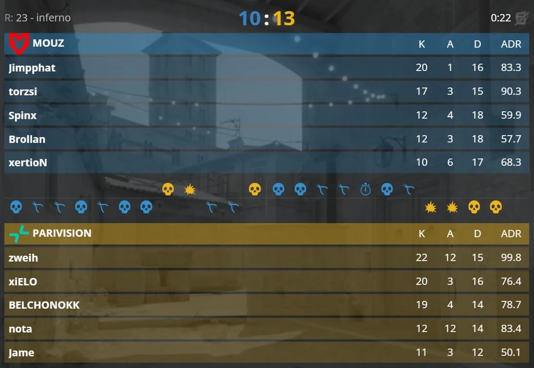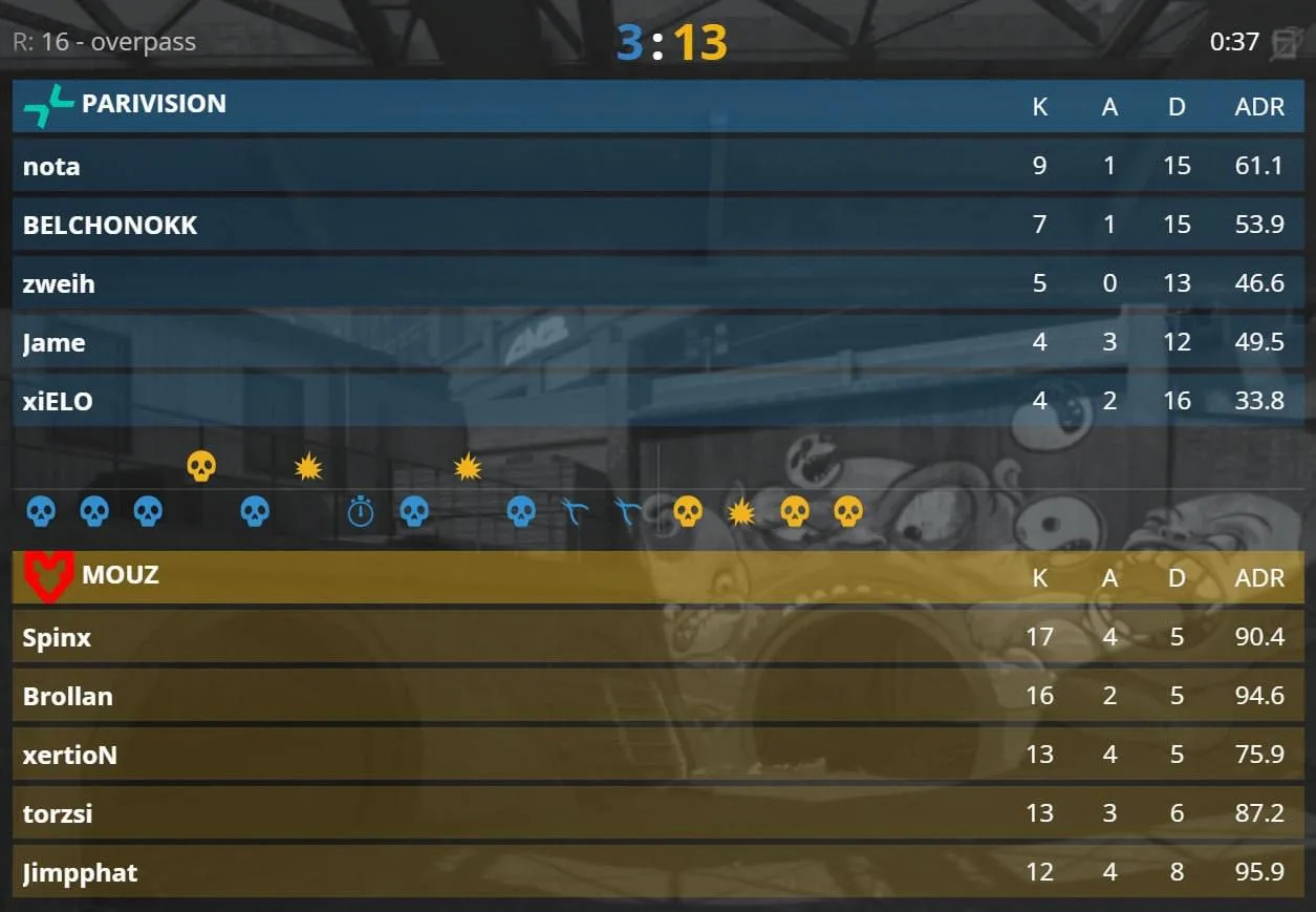 Наши ребята проиграли коллективу MOUZ, упав на счёт 0 — 1 в сетке