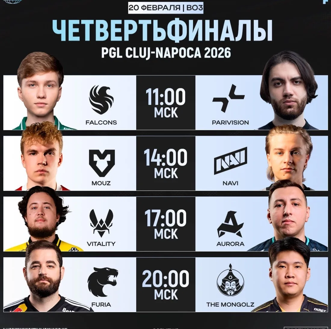🗓 Расписание четвертьфинальных матчей 🇷🇴 PGL Cluj-Napoca 2026