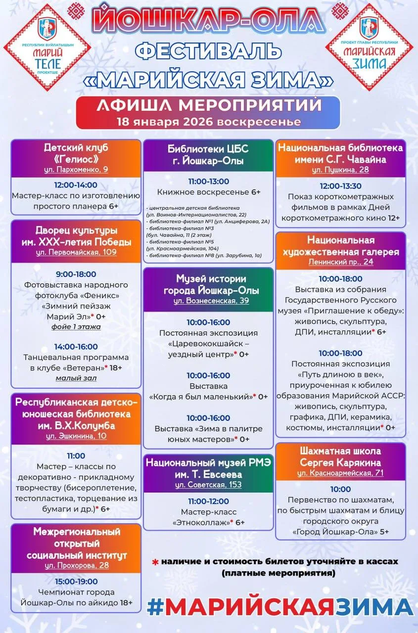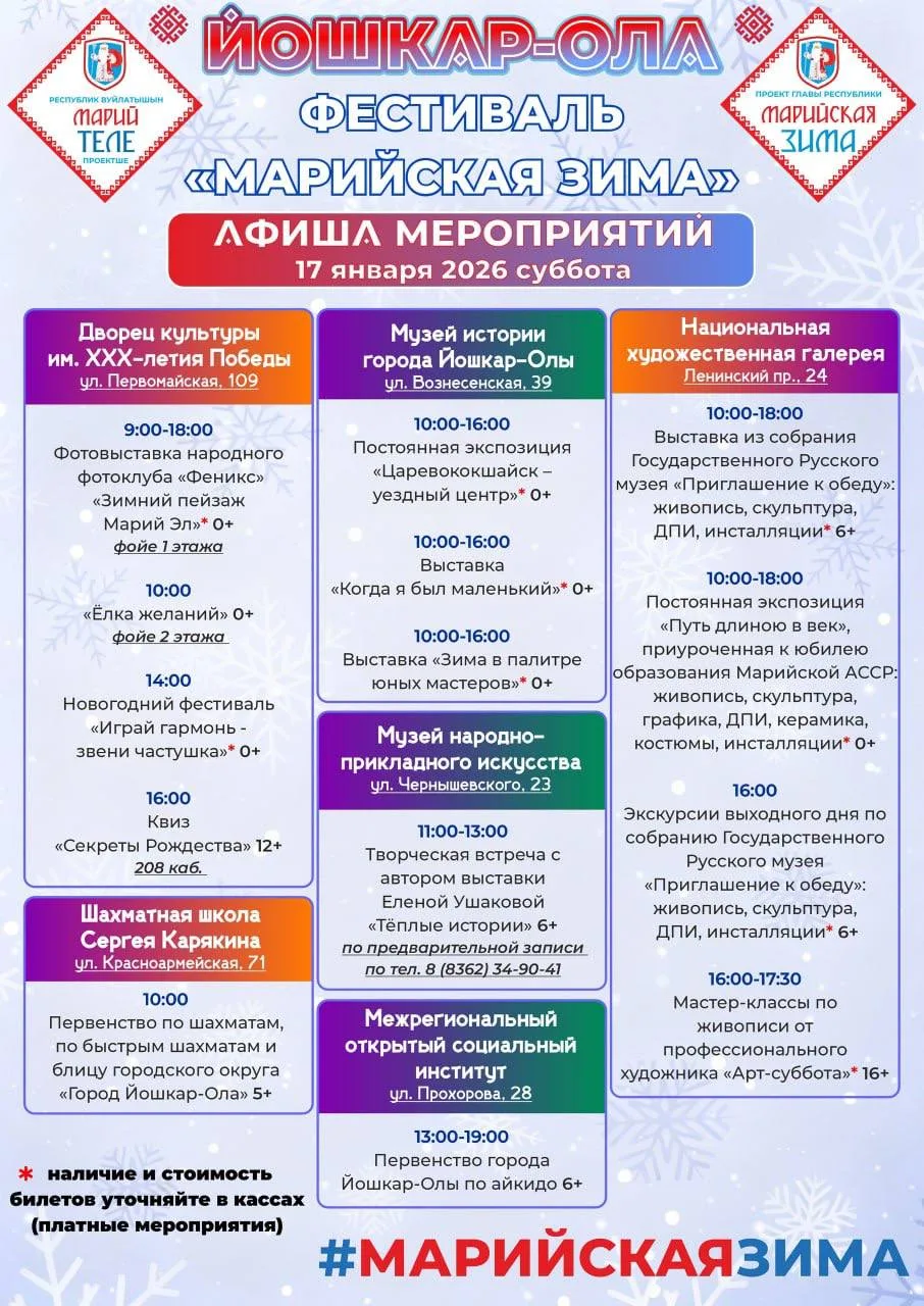 🎄Афиша фестиваля «Марийская зима» на предстоящие выходные, 17 и 18 января