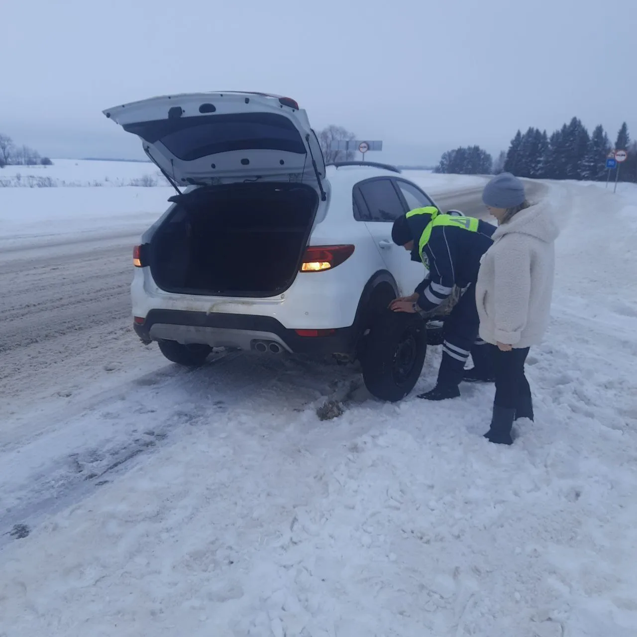 🚨 Инспектор ДПС помогли девушке с проколотым колесом