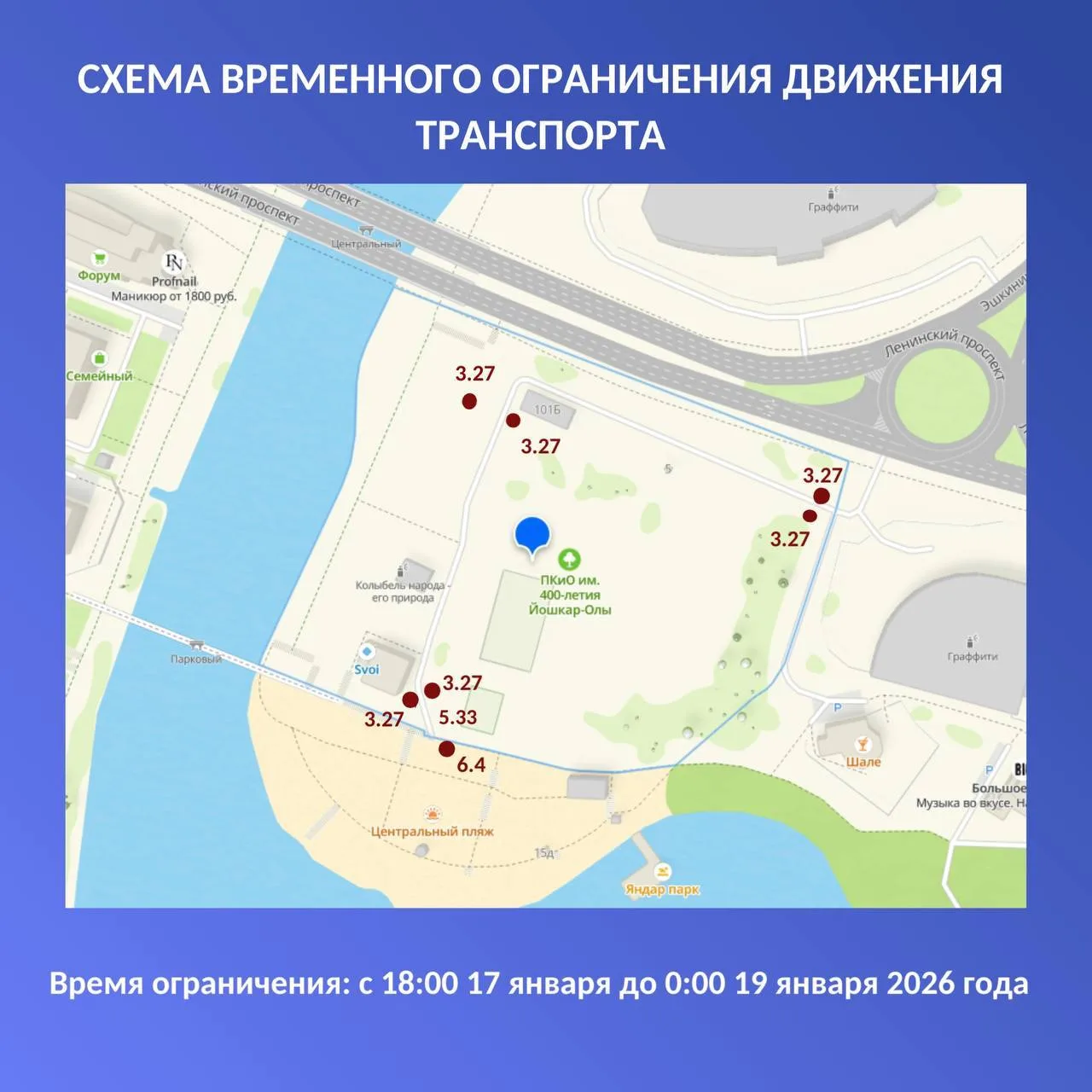 Проезд будет разрешен только для общественного транспорта. Ограничения введут на нескольких участках города в разные даты с 16 по 24 января, сообщает мэрия Йошкар-Олы.