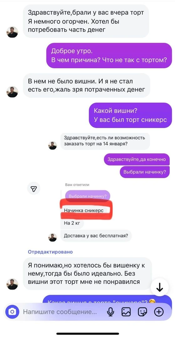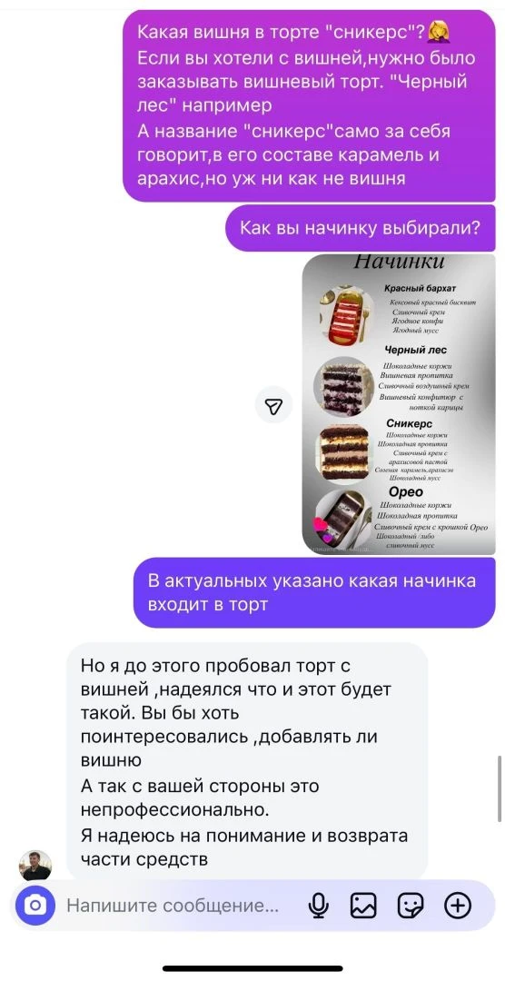 Клиент устроил разнос кондитеру, потому что в его торте не оказалось вишни, но есть нюанс...он заказывал начинку «Сникерс».