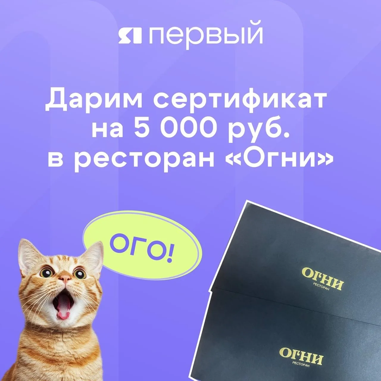 Друзья, а мы напоминаем, что у вас есть возможность выиграть сертификат на 5 000 рублей в ресторан «Огни».