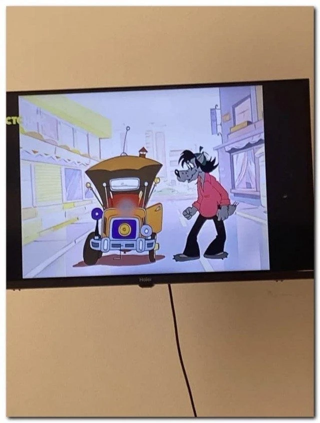 Вот например - в телевизоре заблюрили марку автомобиля Волка из "Ну, погоди!"...