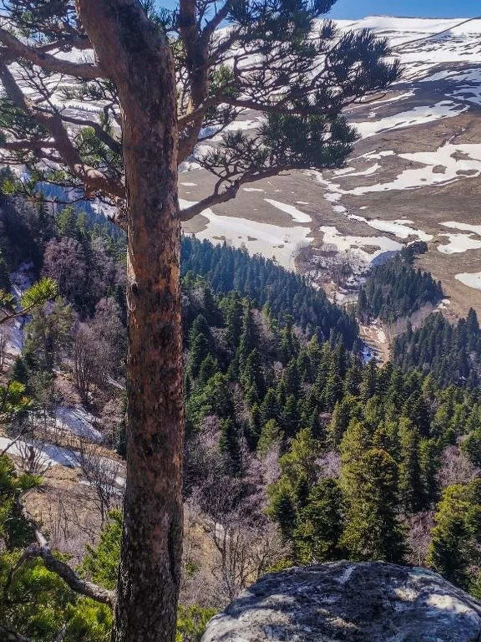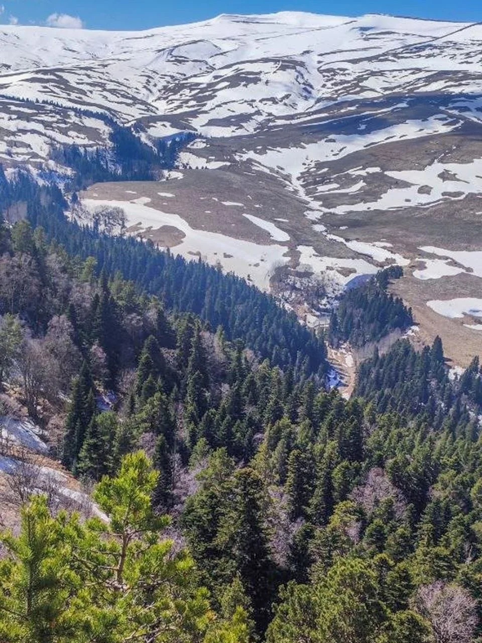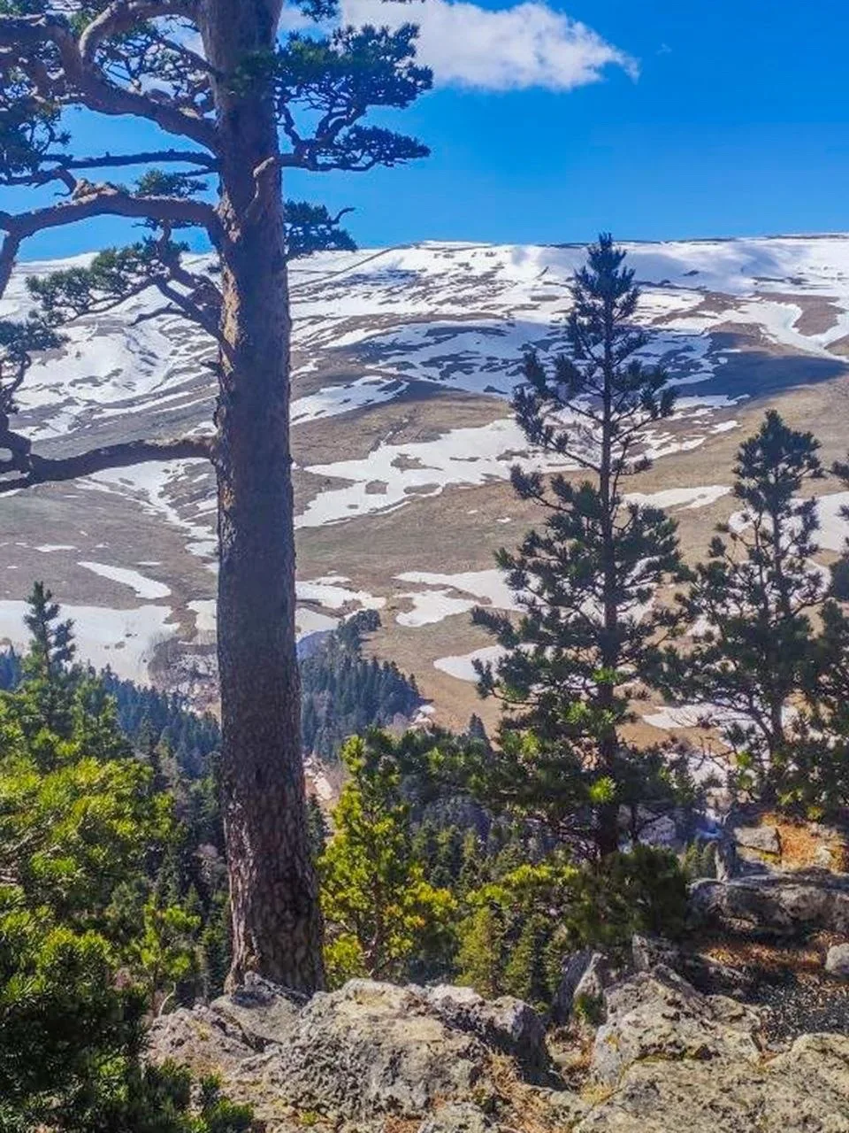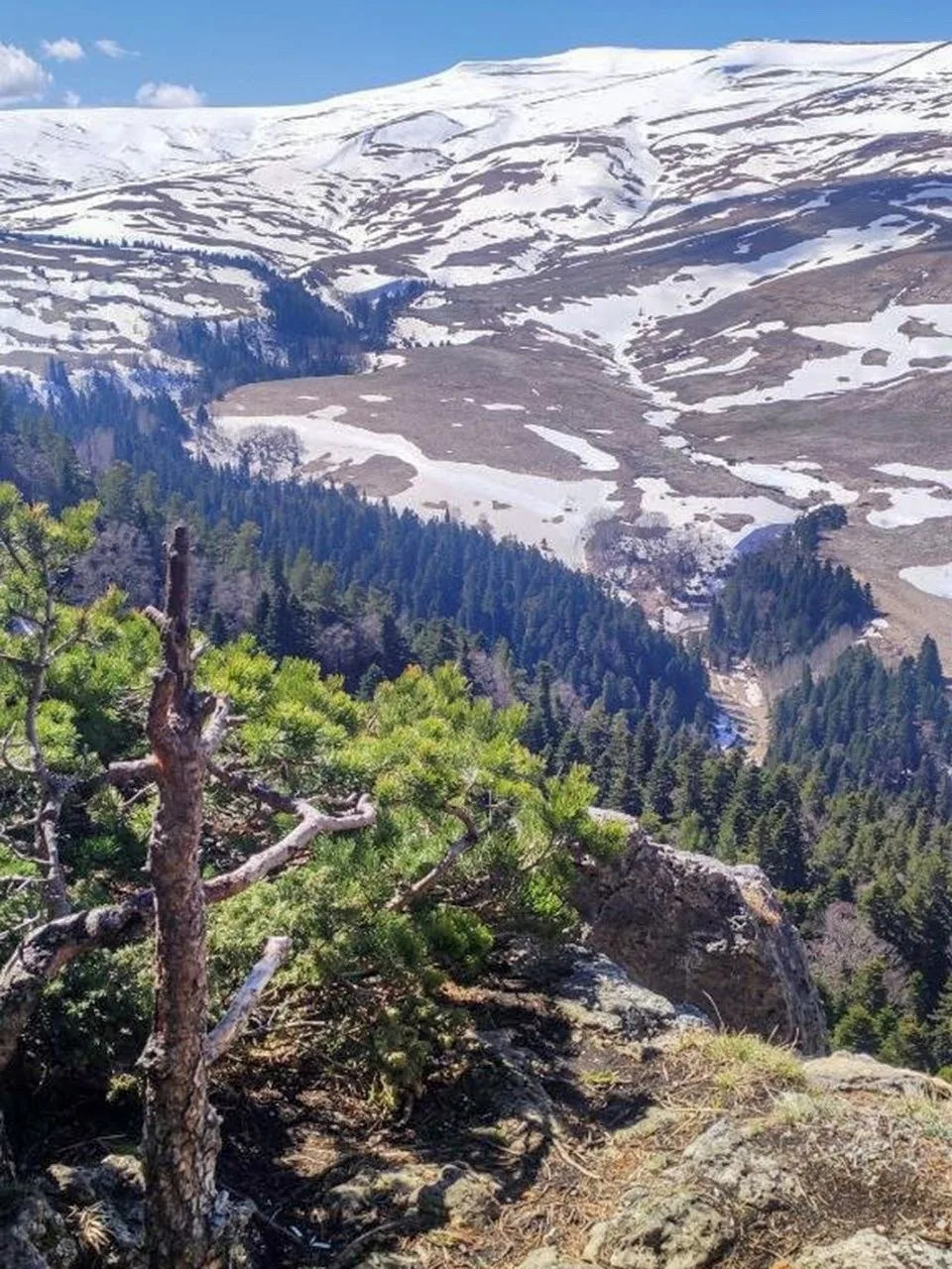 В начале апреля на Лагонакском нагорье активно сходит снег, обнажая бескрайние пространства высокогорных лугов, на которых тут же начинают появляться первые весенние цветы. Талая вода бурными потоками несется вниз по склонам хребтов, наполняя реки и водопады нагорья. Весна в высокогорье приходит на месяц позже.