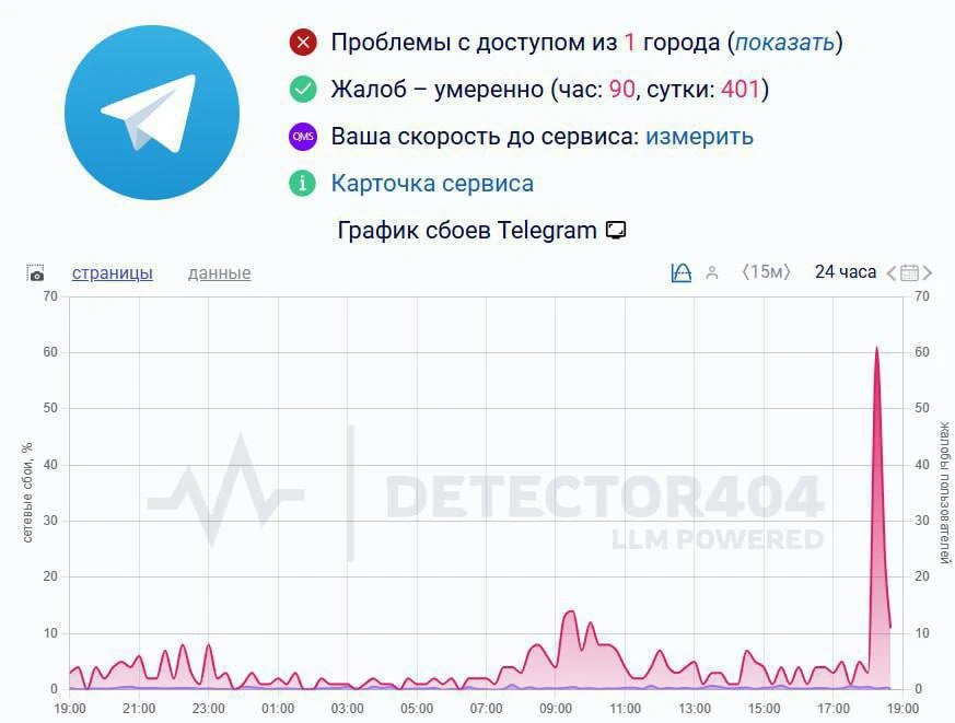 ⚡️ Массовый сбой в Telegram, жалобы фиксируются по всей стране.