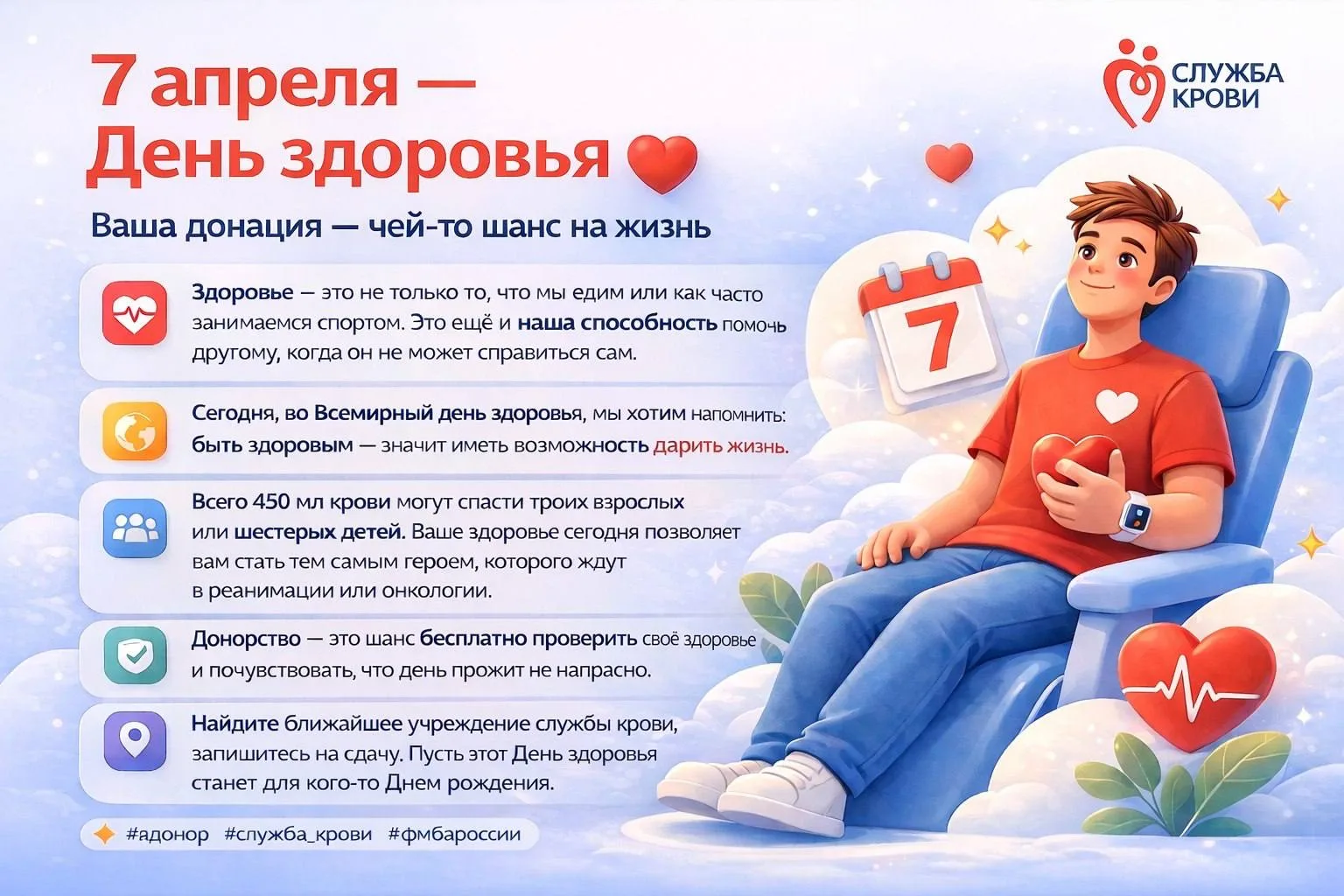 7 апреля — День здоровья. Ваша донация — чей-то шанс на жизнь ❤️