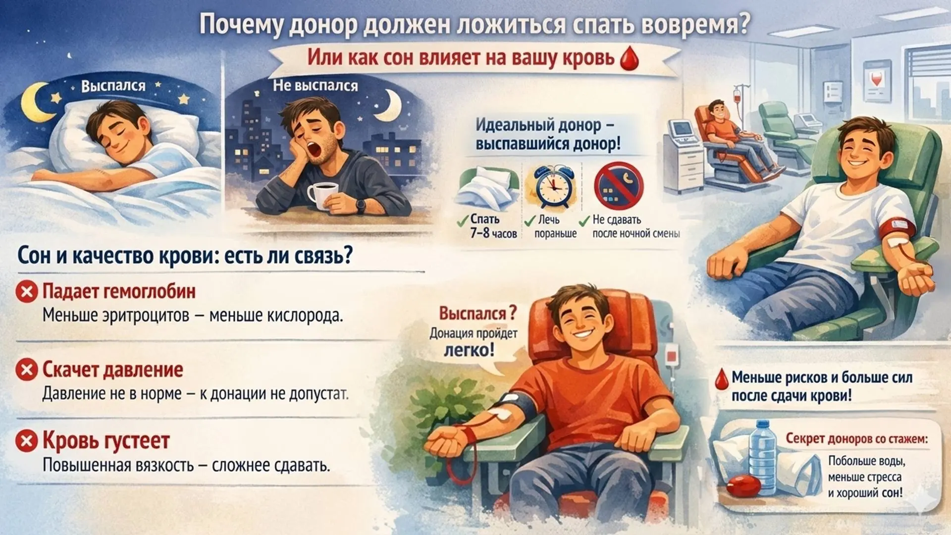 😴 Почему донор должен ложиться спать вовремя? Или как сон влияет на вашу кровь 🩸