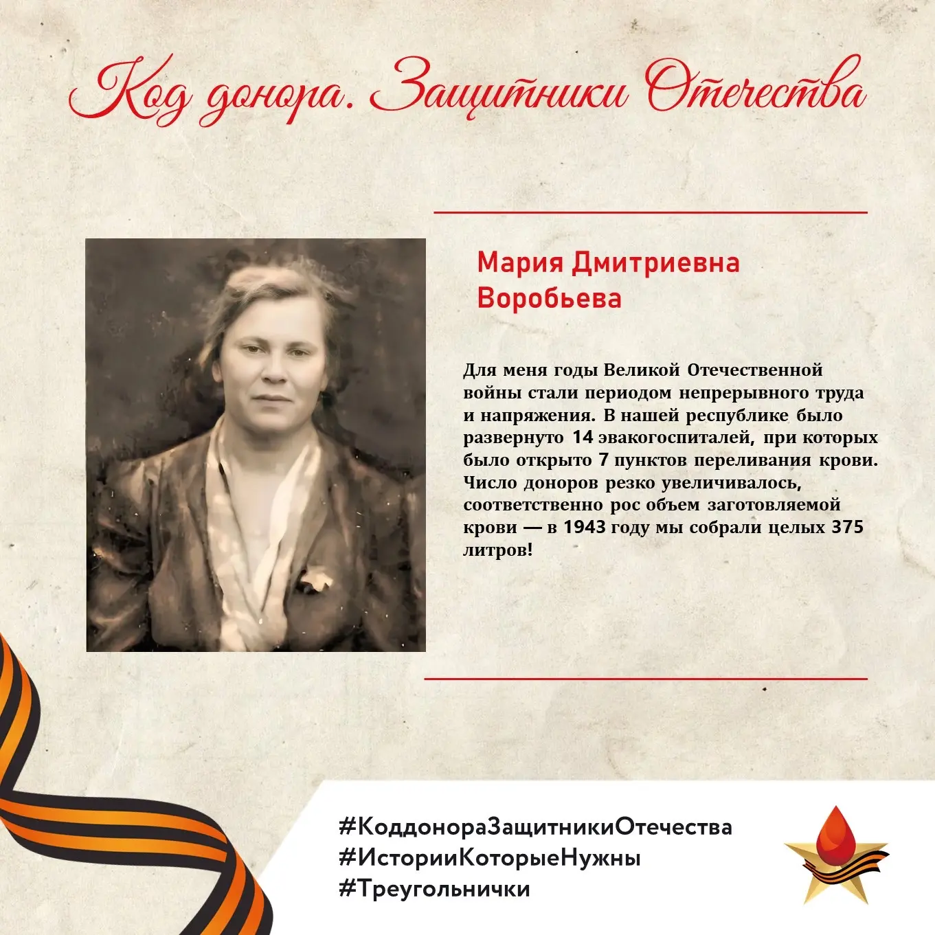 🔻Новая история спецпроекта представлена Иркутской областной станцией переливания крови и посвящена главному хирургу 2-го Белорусского фронта, полковнику Борису Дивногорскому.