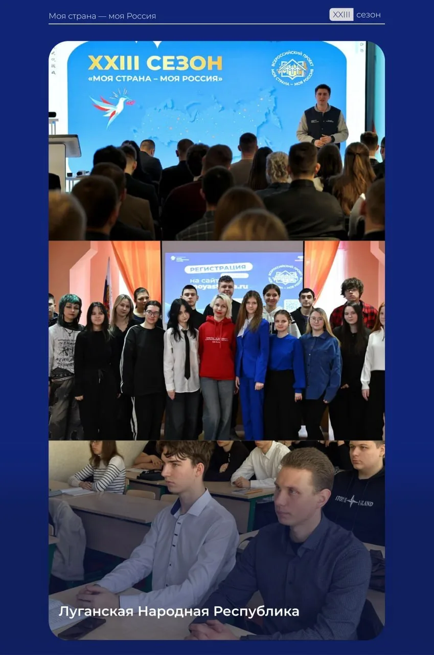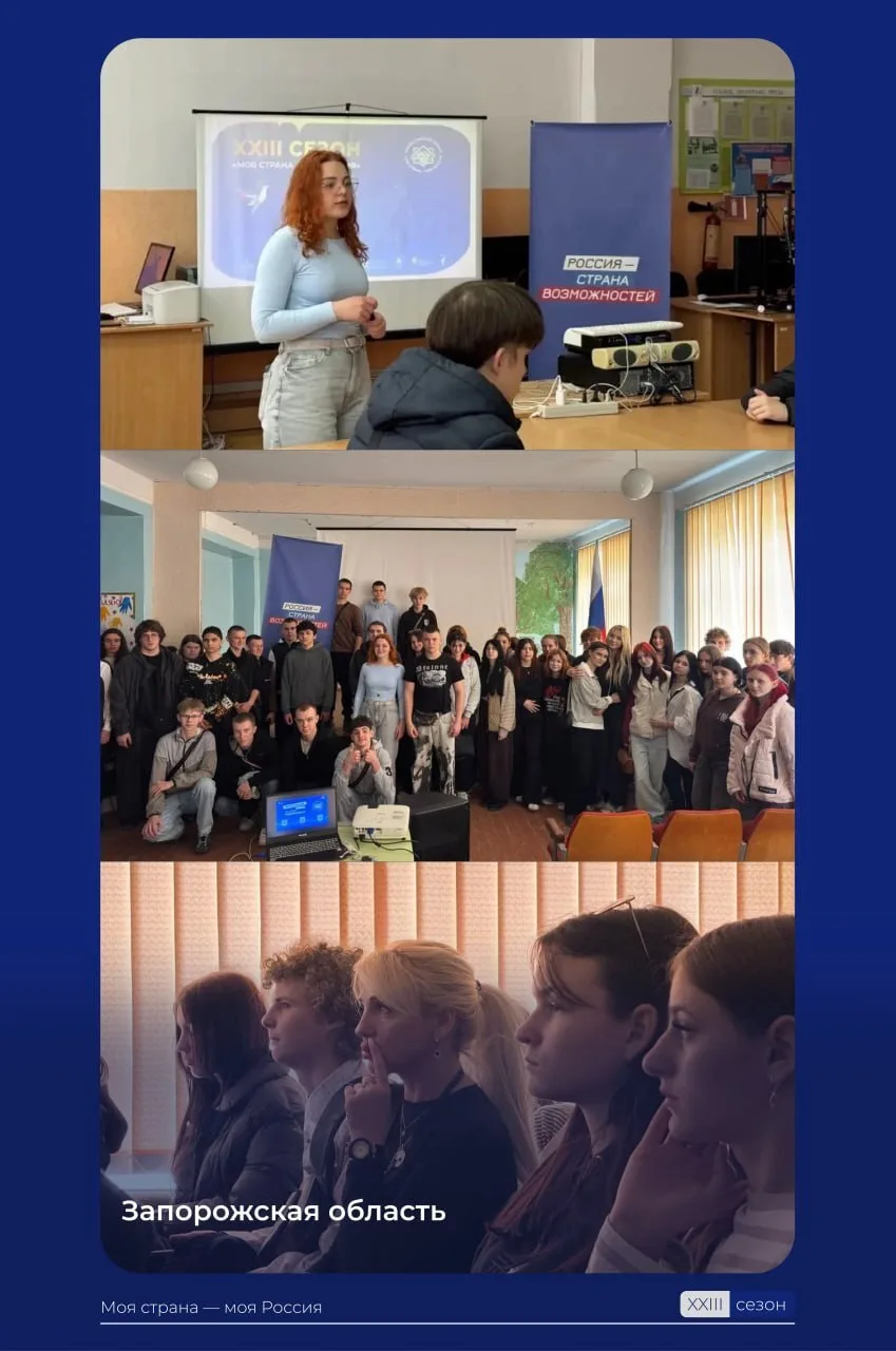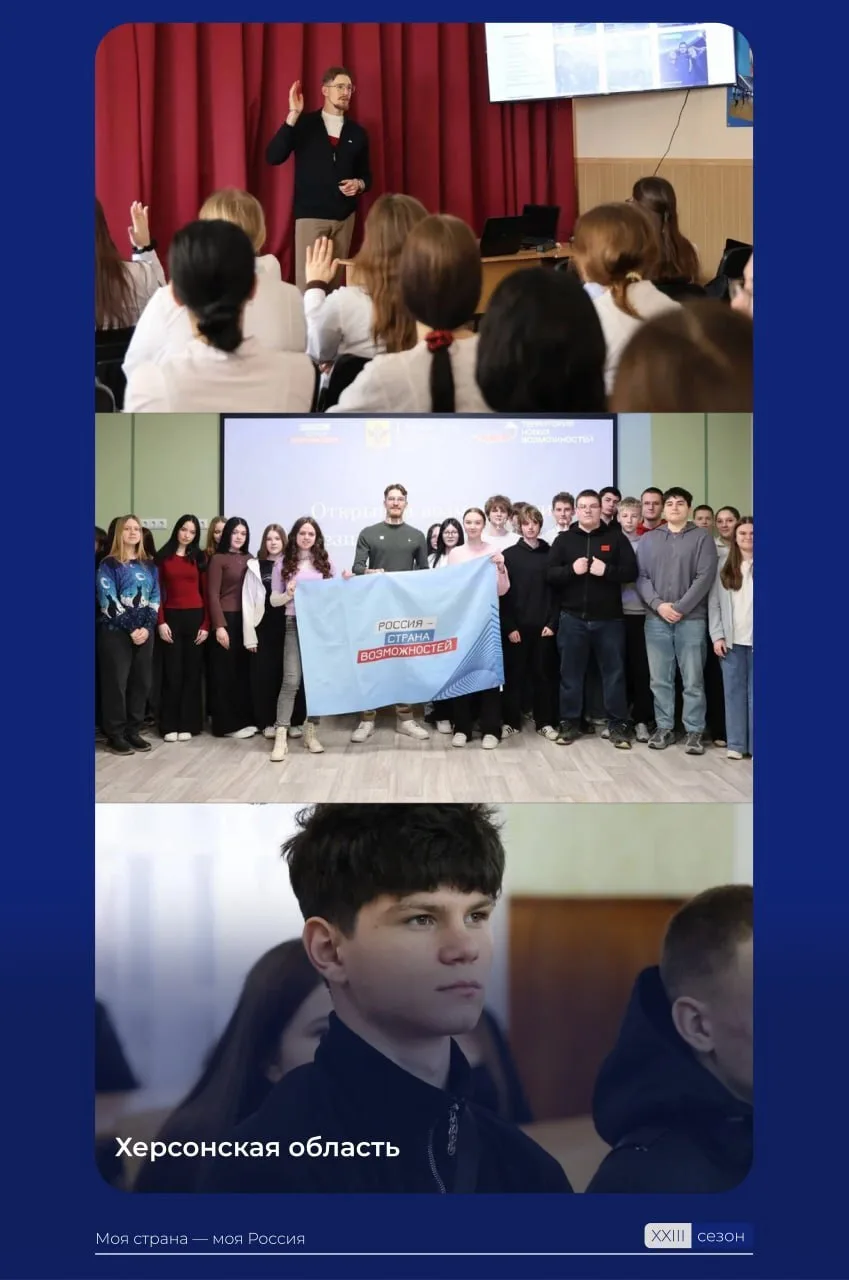 Более 550 школьников и студентов Донбасса и Новороссии узнали об особенностях нового сезона Всероссийского конкурса «Моя страна – моя Россия» (https://t.me/moyastrana_ru) на выездных презентациях команды Президентской платформы «Россия – страна возможностей». (https://t.me/stranavozmojnostey) Встречи в ДНР, ЛНР, Запорожской и Херсонской областях помогли ребятам научиться трансформировать свои идеи в реальные проекты.