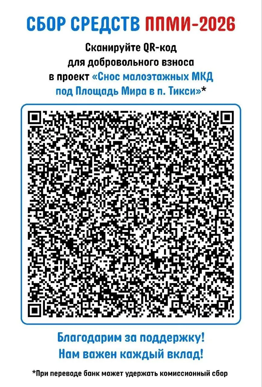 Сканируйте QR-код для добровольного взноса в проект «Снос малоэтажных МКД под Площадь Мира в п. Тикси»