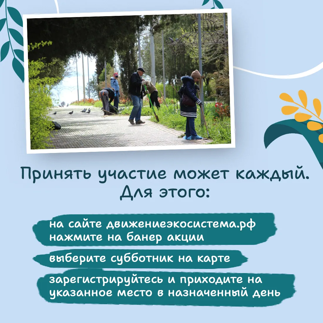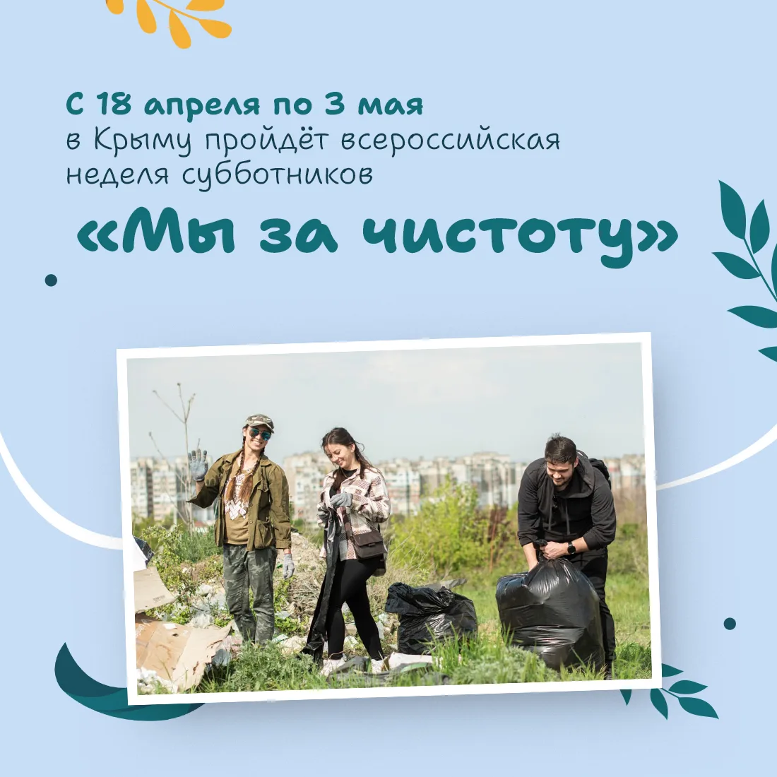 🌳 С 18 апреля по 3 мая все желающие могут стать участниками всероссийской недели субботников «Мы за чистоту».