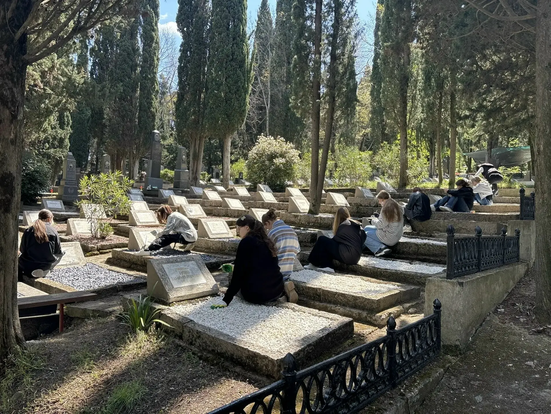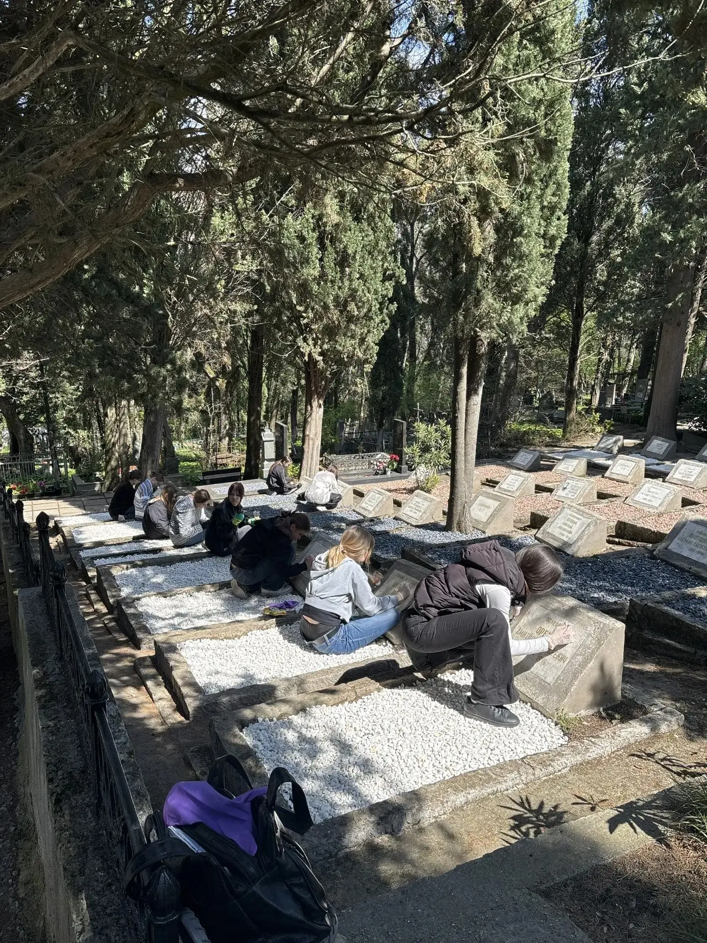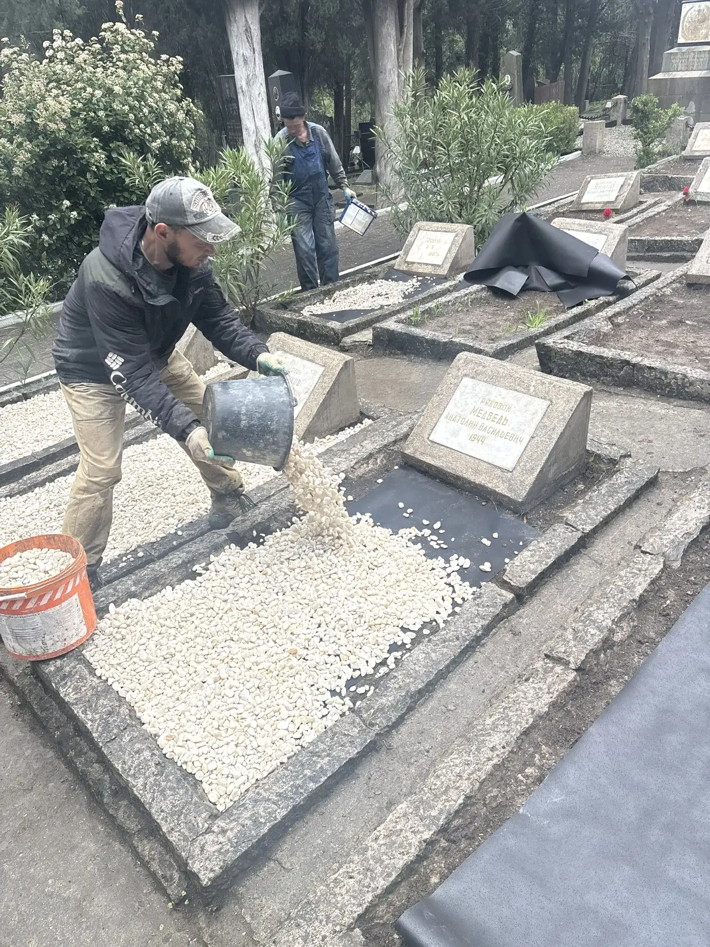 Отдельное внимание традиционно уделяется воинским захоронениям на Старом кладбище. Сотрудники «Ритуала» очистили могилы от травы, покрыли грунт геотекстилем и засыпали декоративной крошкой. А учащиеся Ялтинской детской художественной школы имени Ф.А. Васильева помогли обновить надписи на надгробных плитах 🎨