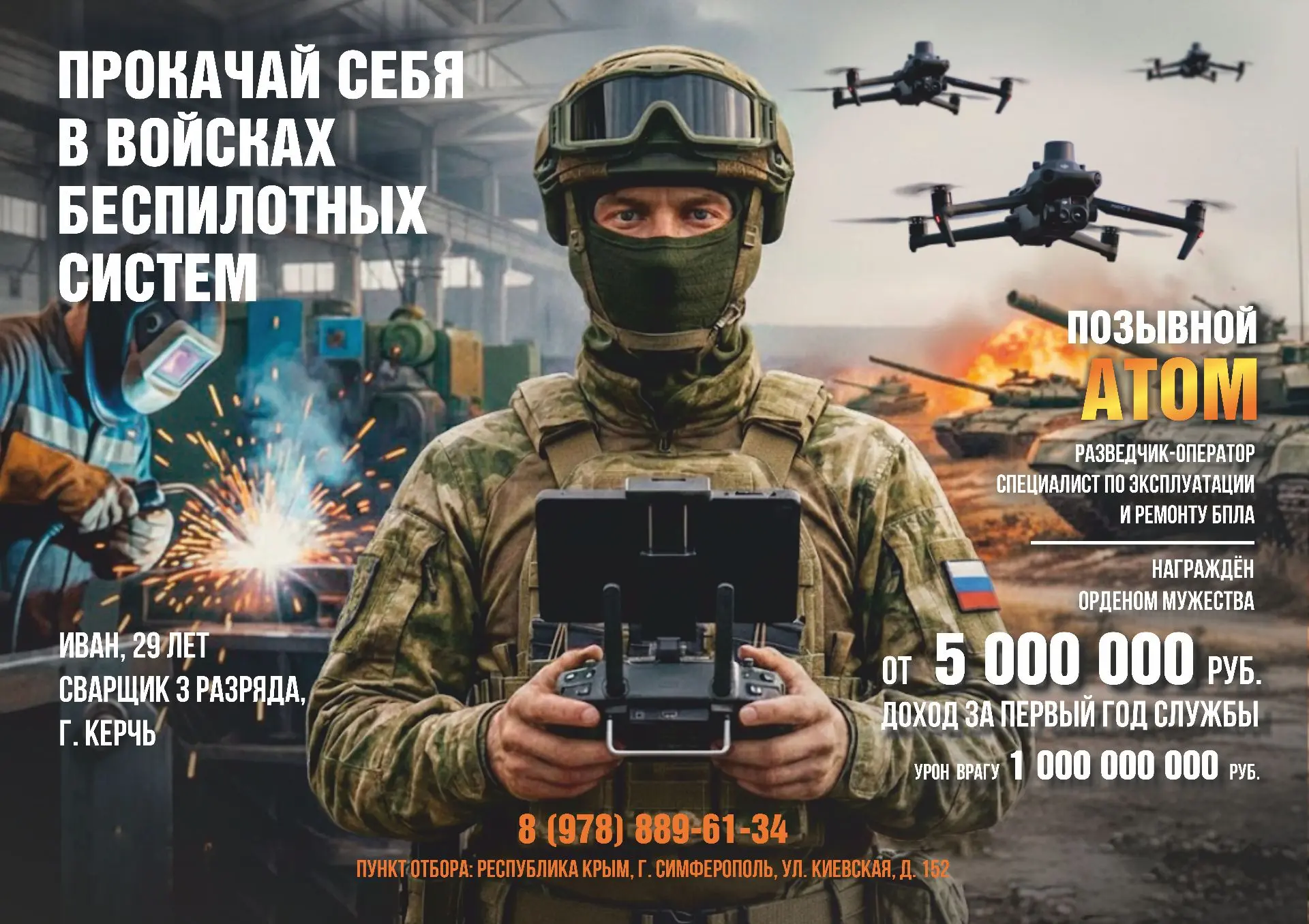Стань оператором, стань сильнее, стань незаменимым. Защищай страну в войсках беспилотных систем. Это армия нового поколения, где решают твой интеллект, реакция и мастерство.