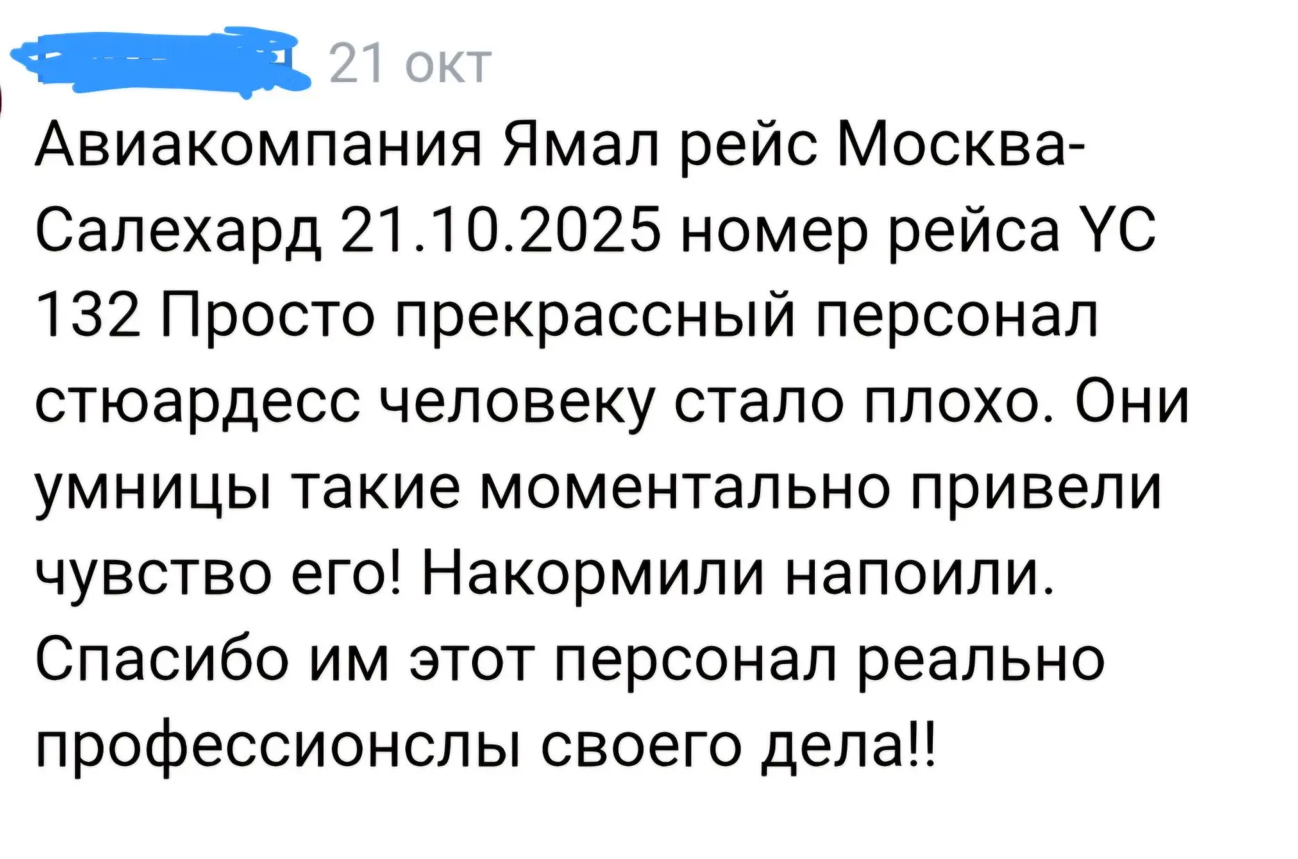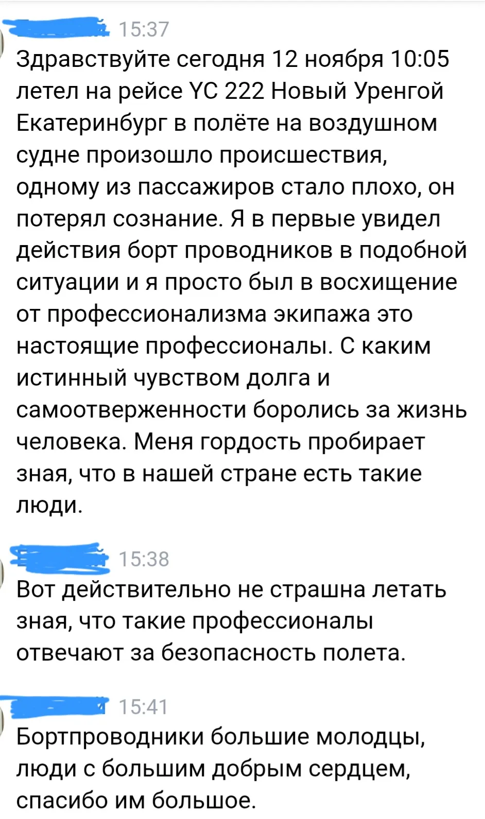 Нам часто пишут пассажиры о своих впечатлениях, когда они становятся свидетелями оказания помощи и заботы на борту.