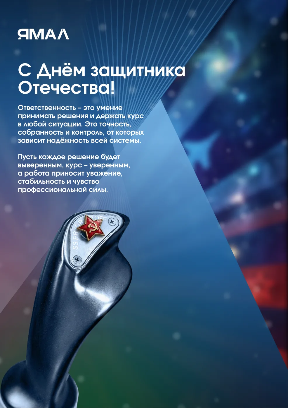 Желаем всему коллективу авиакомпании «Ямал» чистого неба, новых перспективных маршрутов и стабильного развития. Пусть каждый взлёт будет уверенным, каждая посадка – мягкой, а доверие пассажиров и деловых партнёров только крепнет. Благодарим за многолетнее плодотворное сотрудничество, верность родному региону и неизменное стремление к совершенству. Вместе мы продолжаем развивать авиацию на Ямале!
