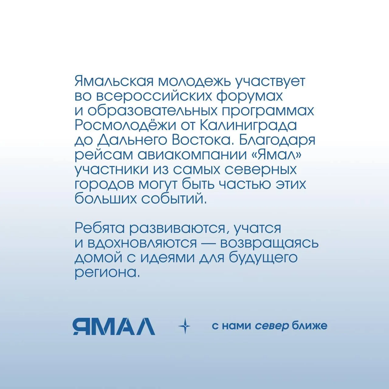 Да, Ямал находится далеко на карте, но это не мешает нам быть рядом. И каждый день помогать тем, кому это действительно необходимо, сокращая расстояния, делая Север ближе, а мечты и важные события людей — реальностью.