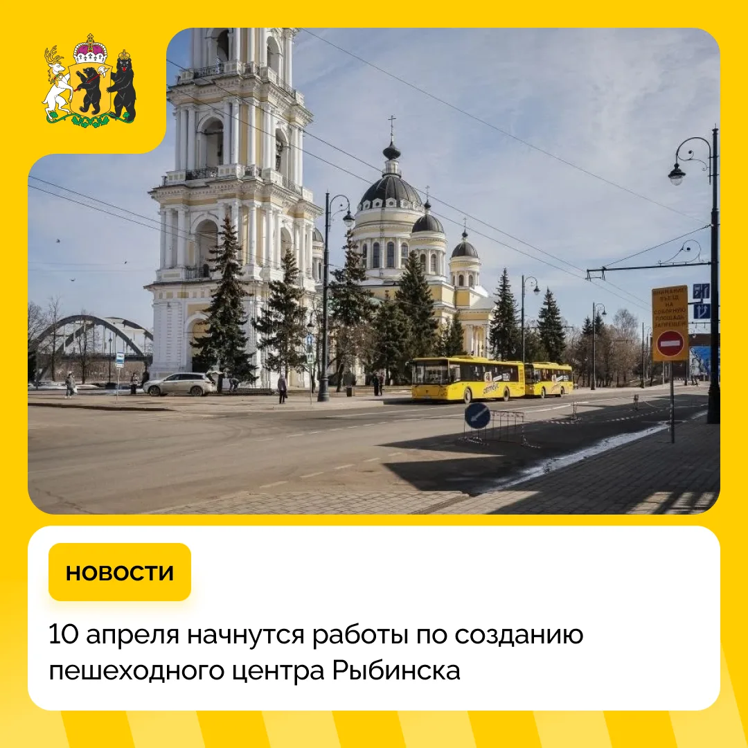 С 10 апреля в центре Рыбинска начнутся работы по развитию пешеходного пространства. Они пройдут на улицах Стоялой, Крестовой и Волжской набережной, на это время будут введены ограничения движения.