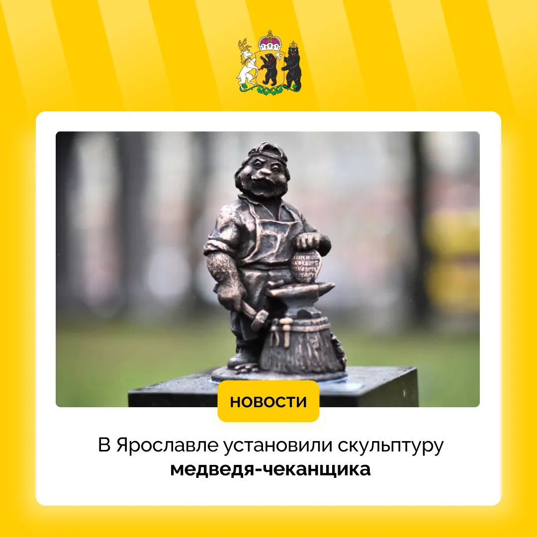 Появился Медведь-чеканщик — скульптура в честь ярославской копейки 1612 года. Стоит на историческом месте: рядом Спасо-Преображенский монастырь, где 400 лет назад хранилась казна, и современный Банк России.