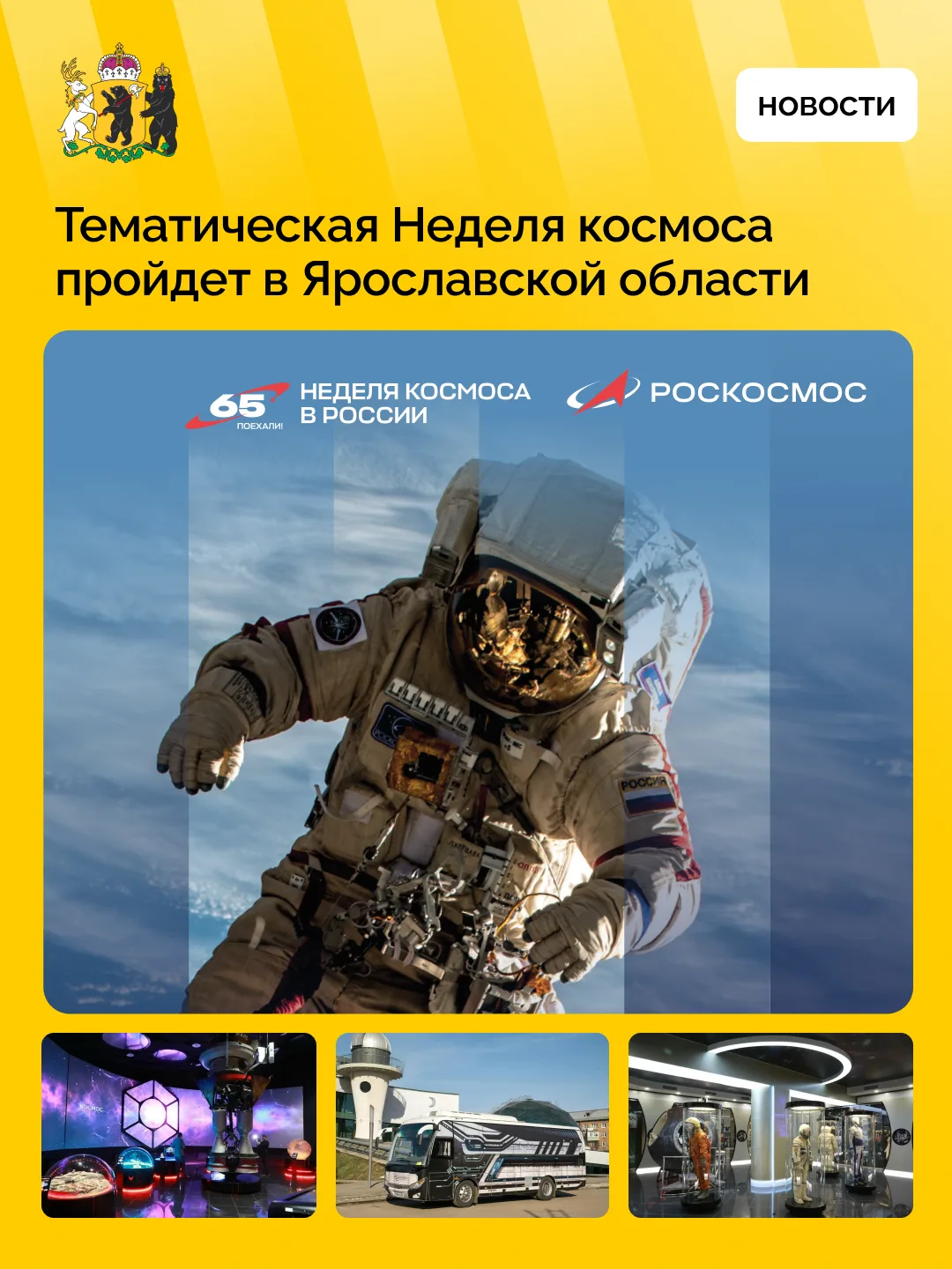 К мероприятиям присоединятся учреждения культуры по всей области. Подробная афиша доступна на сайте Ярославского планетария: https://yarplaneta.ru/news/nedelya-kosmosa-2026/.