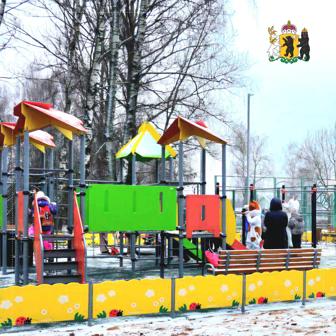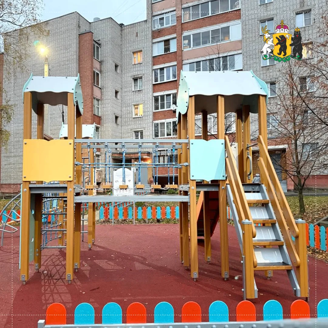 ✅ ул. Клубная, 1: Теперь здесь радуют глаз детская площадка с безопасным покрытием и стильная зона отдыха для взрослых.