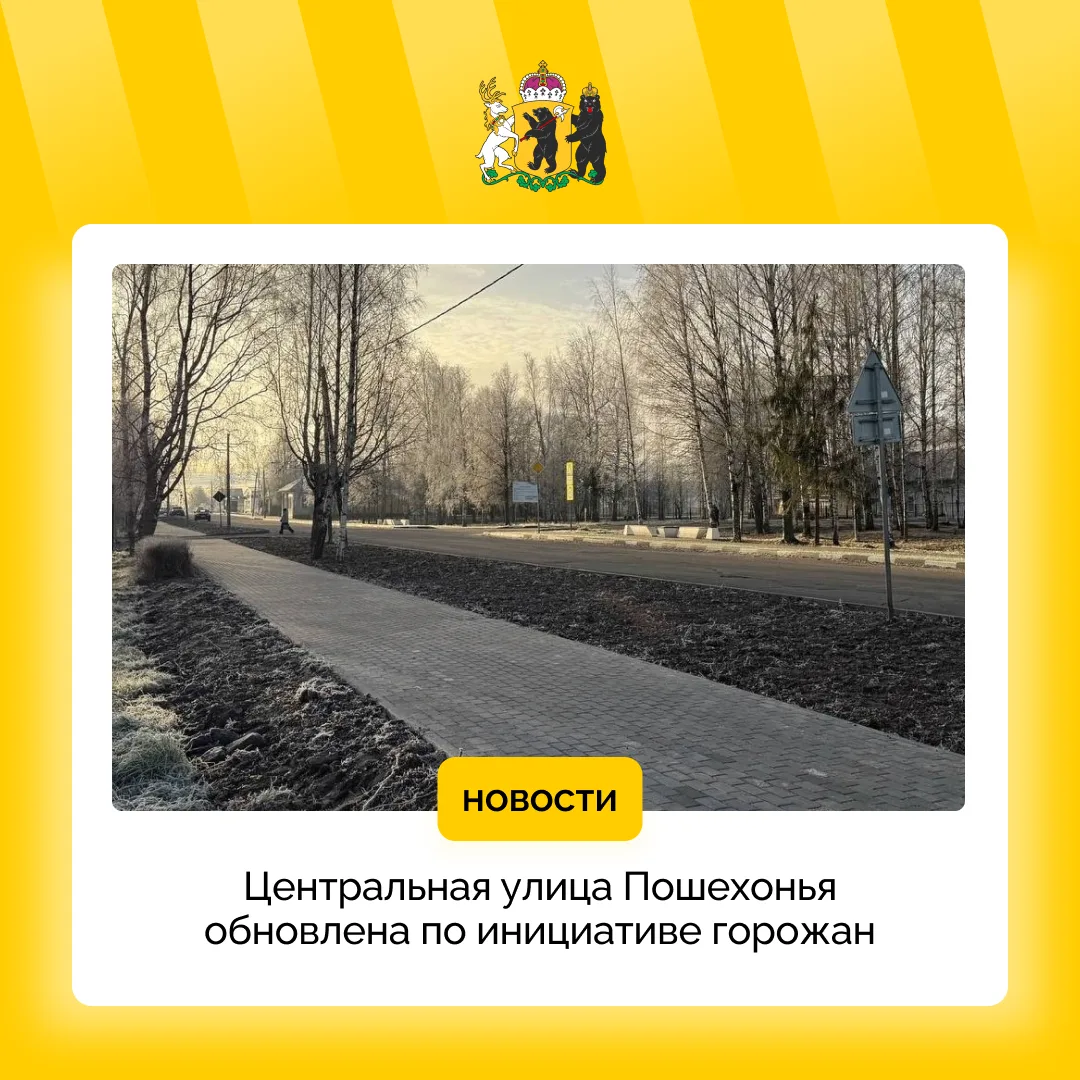 Трехлетний проект благоустройства ключевой пешеходной зоны Пошехонья завершён. Теперь и чётная, и нечётная стороны улицы