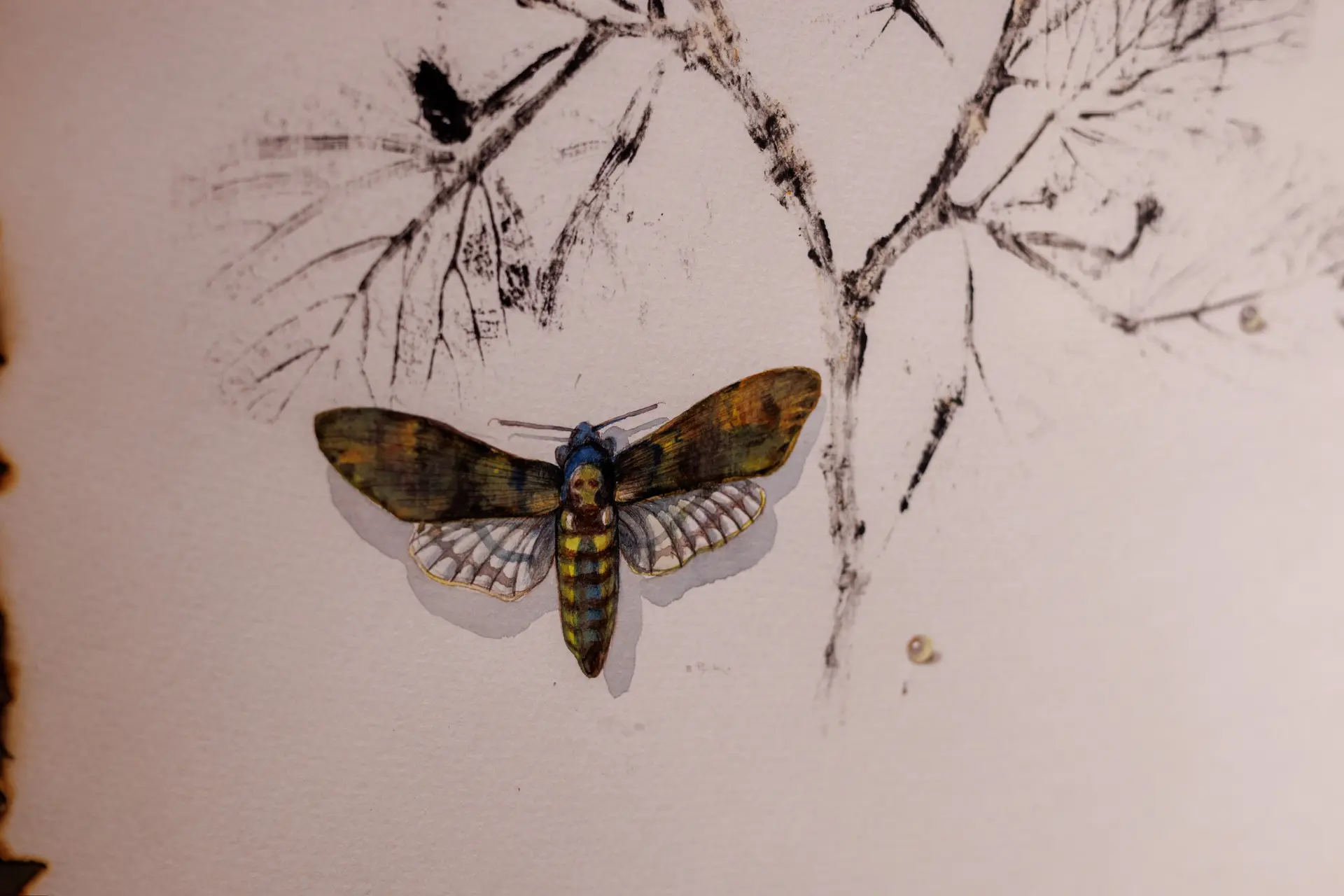 Василий изображает мир растений и насекомых, соединяя в своем творчестве традицию с новаторством, технику монотипии и акварели, обыгрывая силуэт печати с прозрачностью акварели.