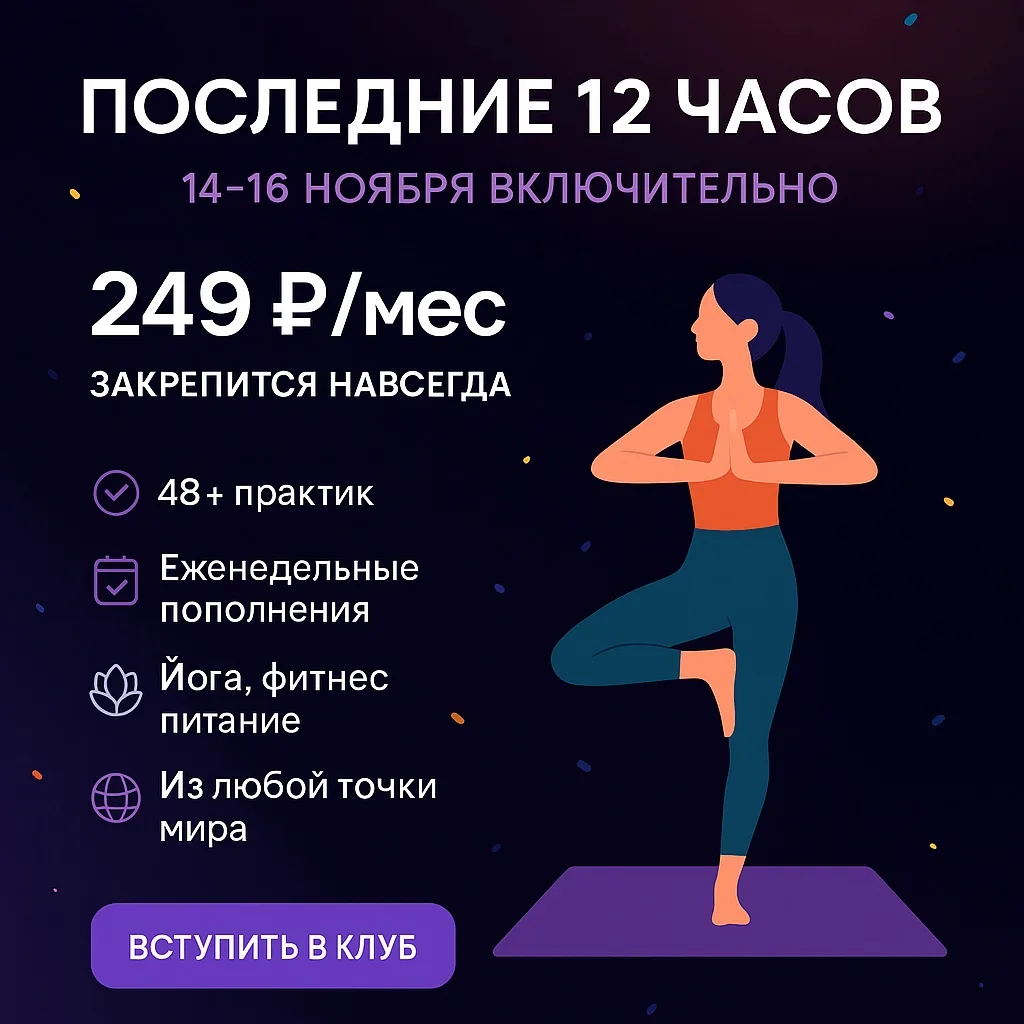 с 14 по 16 ноября включительно можно вступить в закрытый клуб YOFIT за 249 ₽ в месяц - и эта стоимость закрепится за вами навсегда.