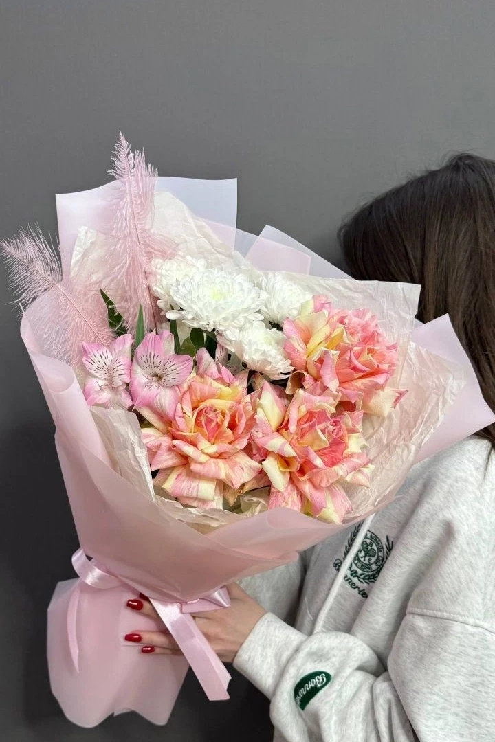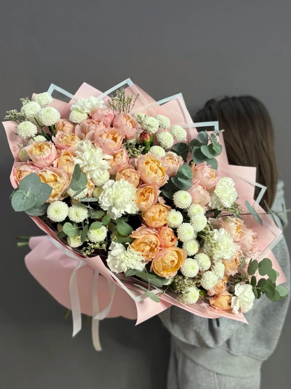 😍Авторский букет с кустовыми пионовидными розами сорта «Джульетта»