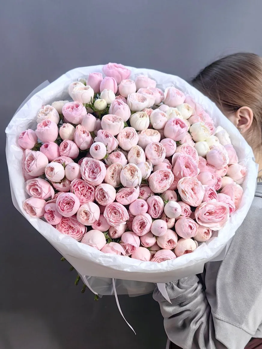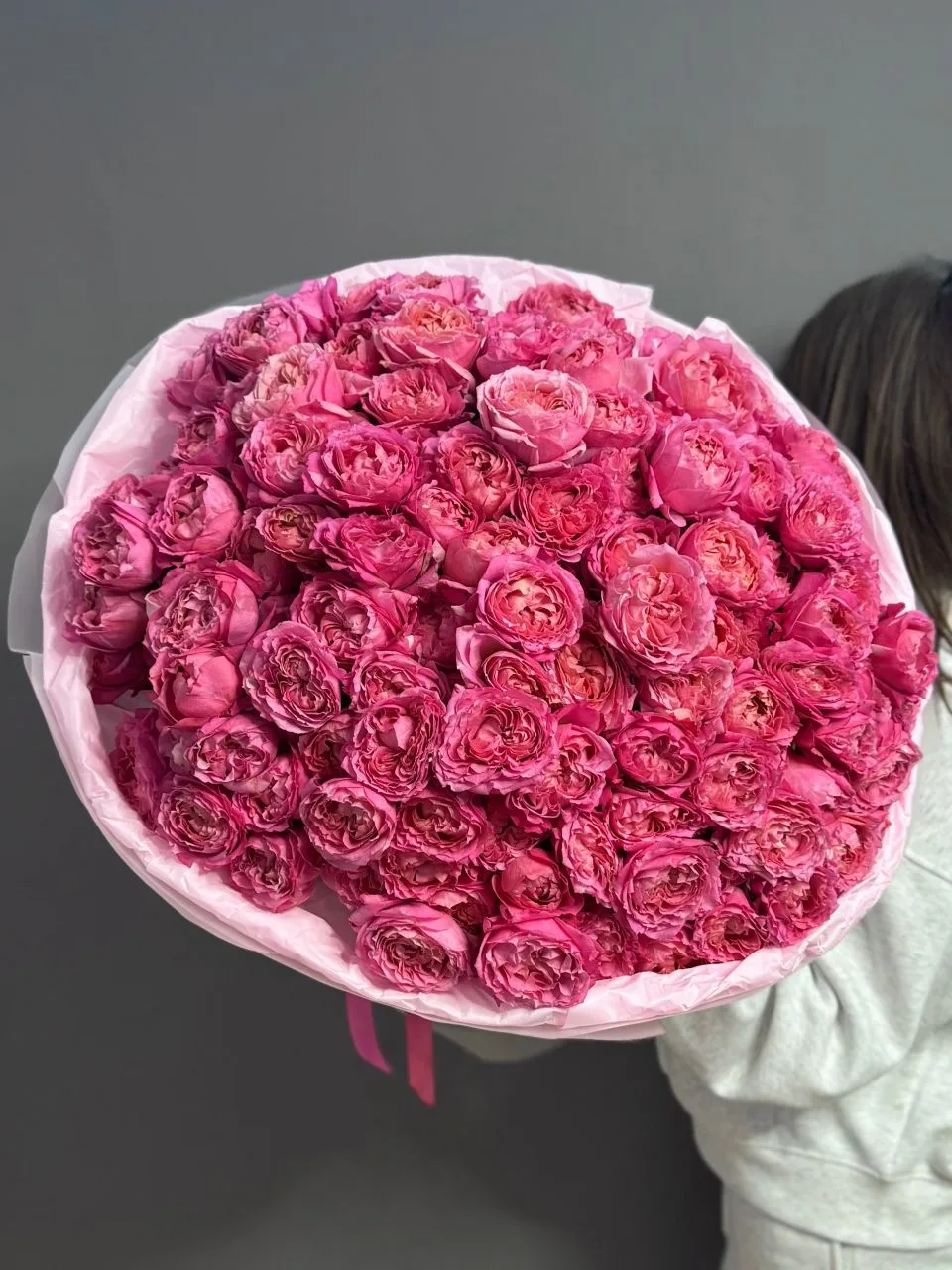 ☁️Букет-гигант их кустовых пионовидных роз сорта "Менсфилд парк" в оформлении