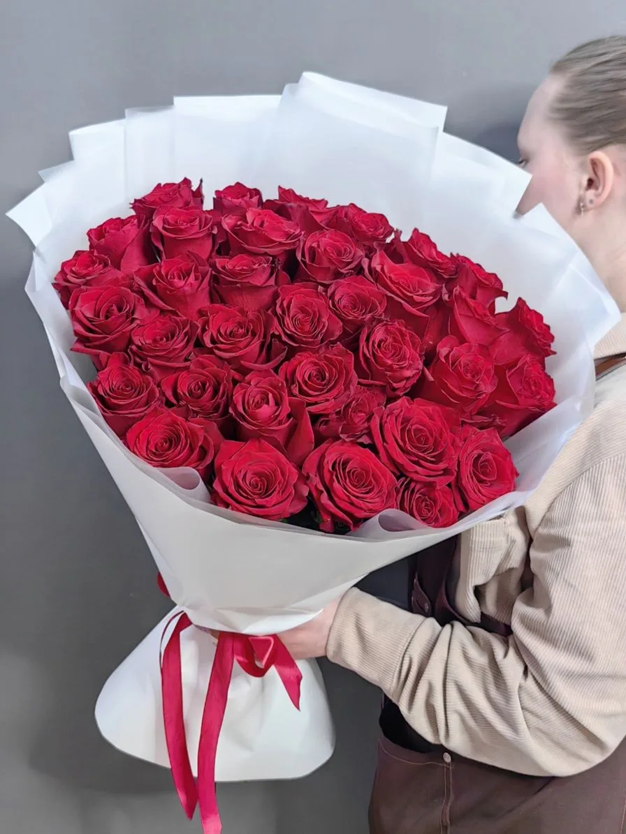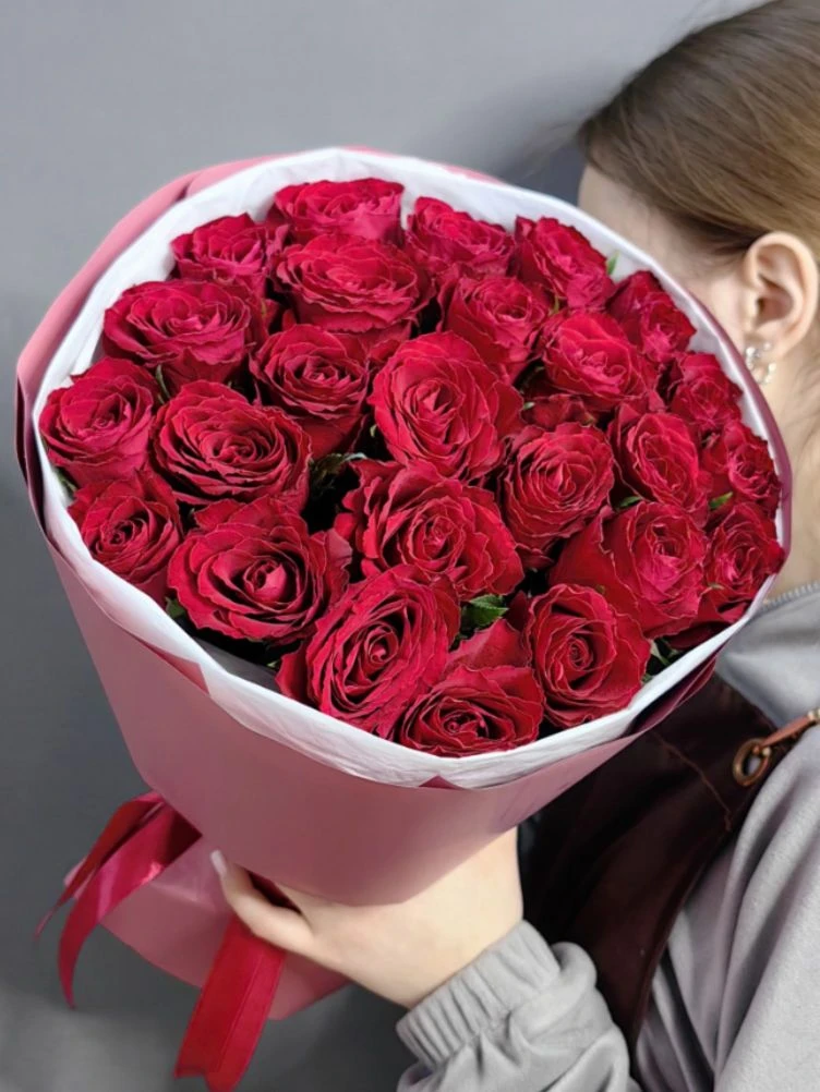 ❤Монобукет из 25 бордовых кенийских роз 40 см в оформлении