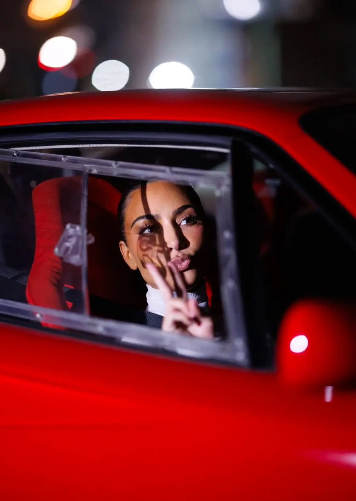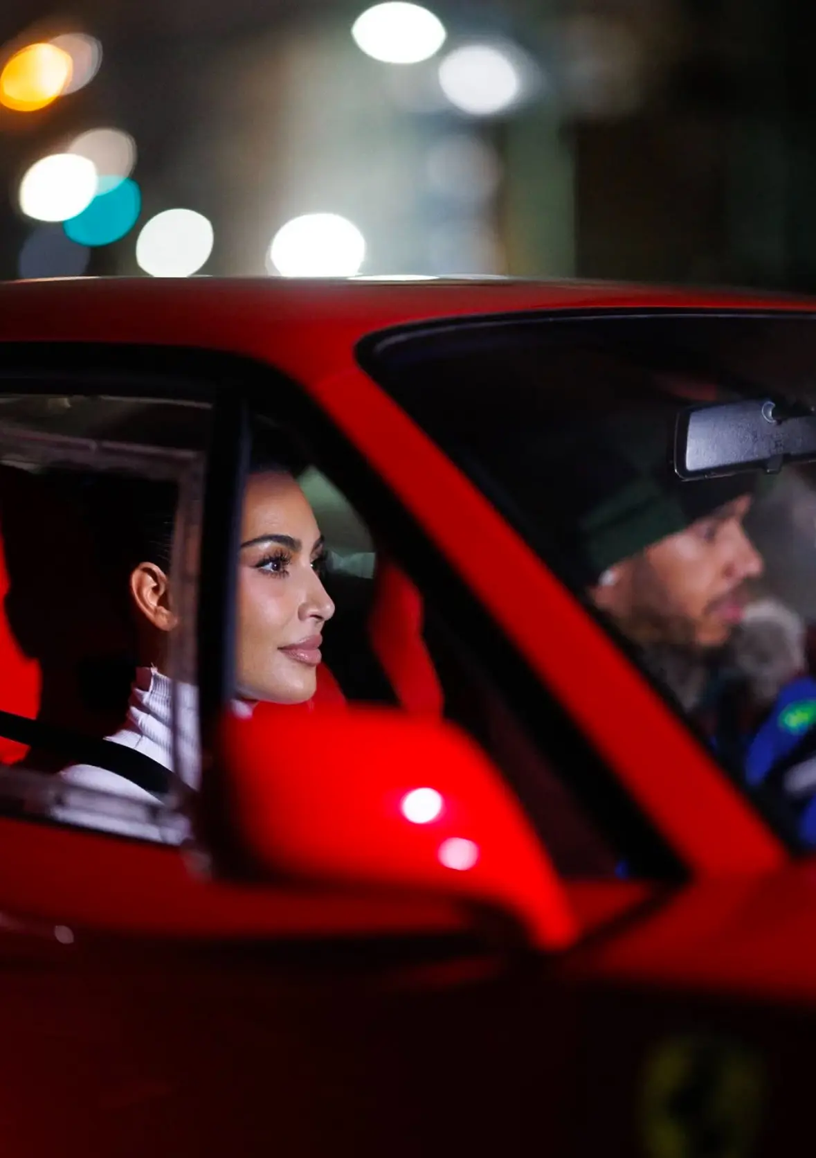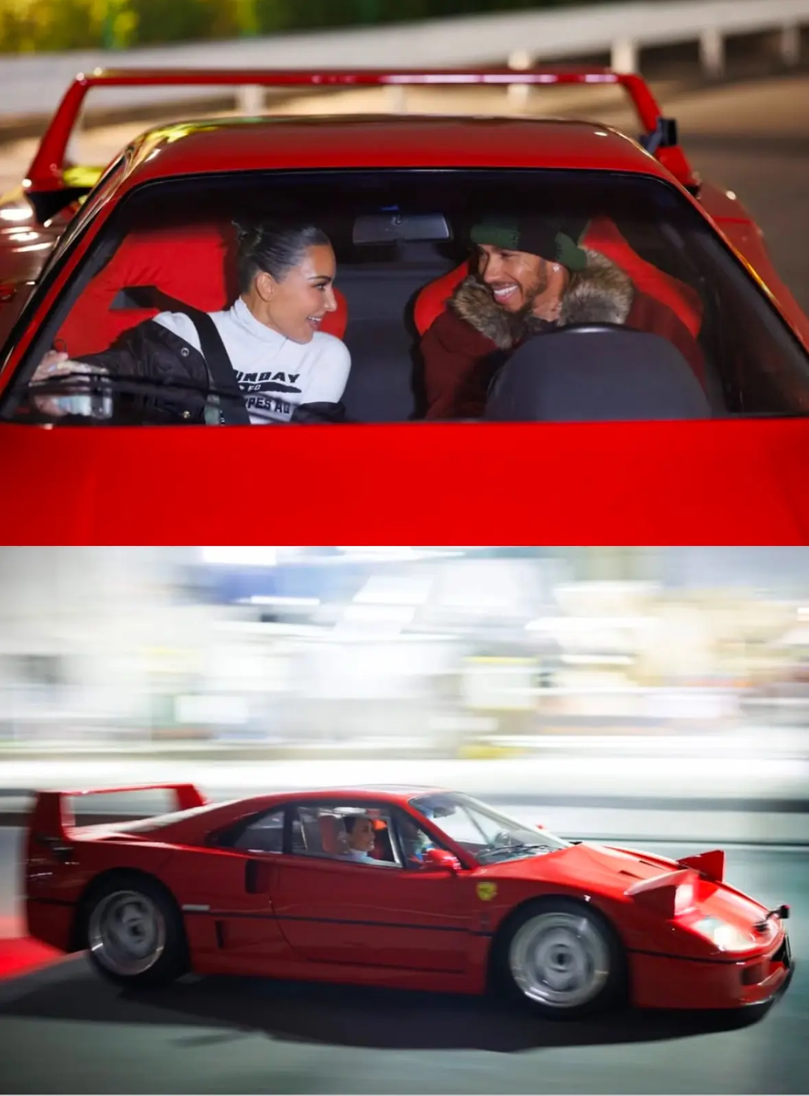 Льюис усадил Кимусика в свой алый Ferrari и устроил ей личный мастер-класс по адреналину с ревом мотора и опасными маневрами.