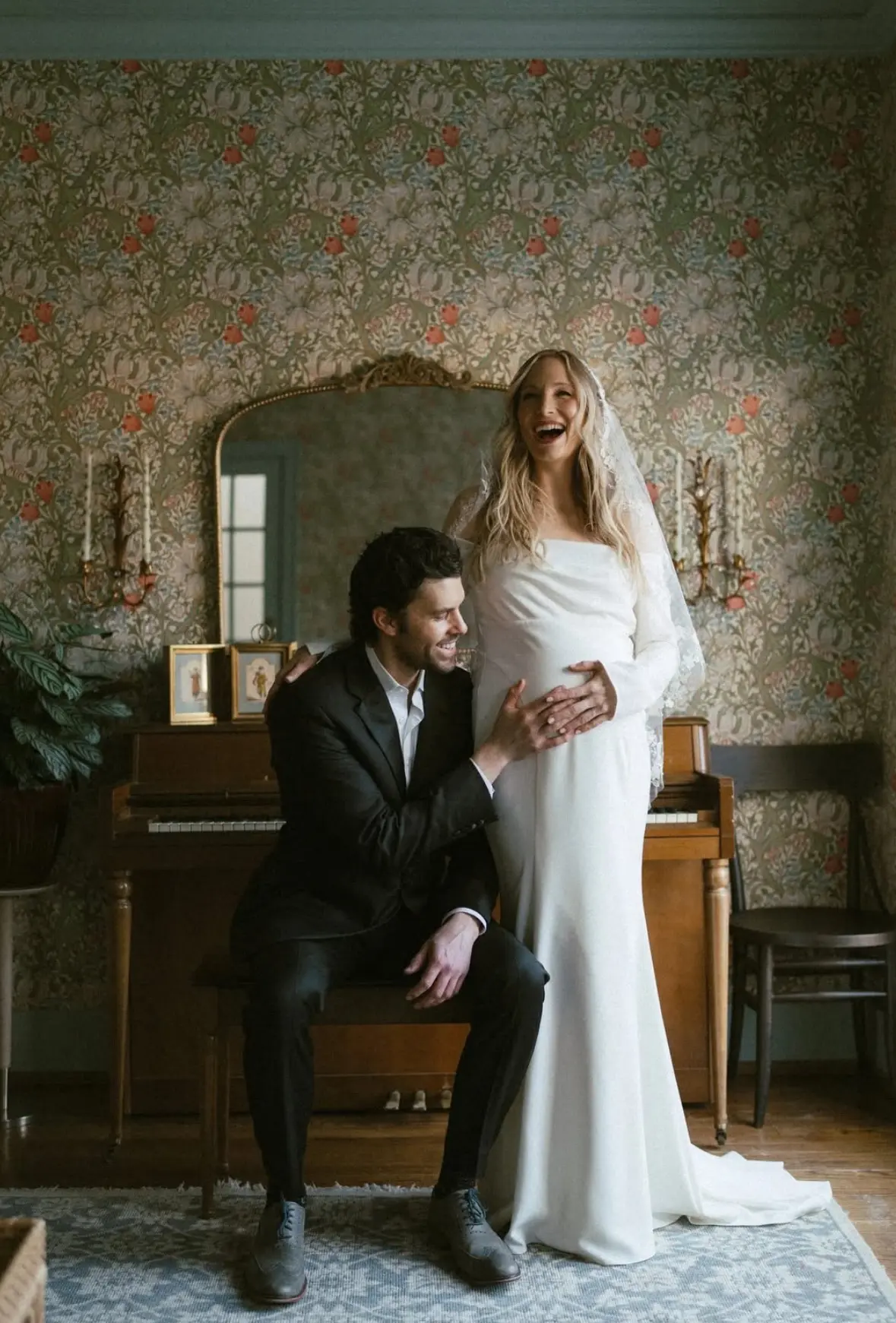 Требования к наряду были особенные — очевидно, самое главное, чтобы ткань не перетягивала округлившийся животик Кэндис, а эффектно его подчеркивала.