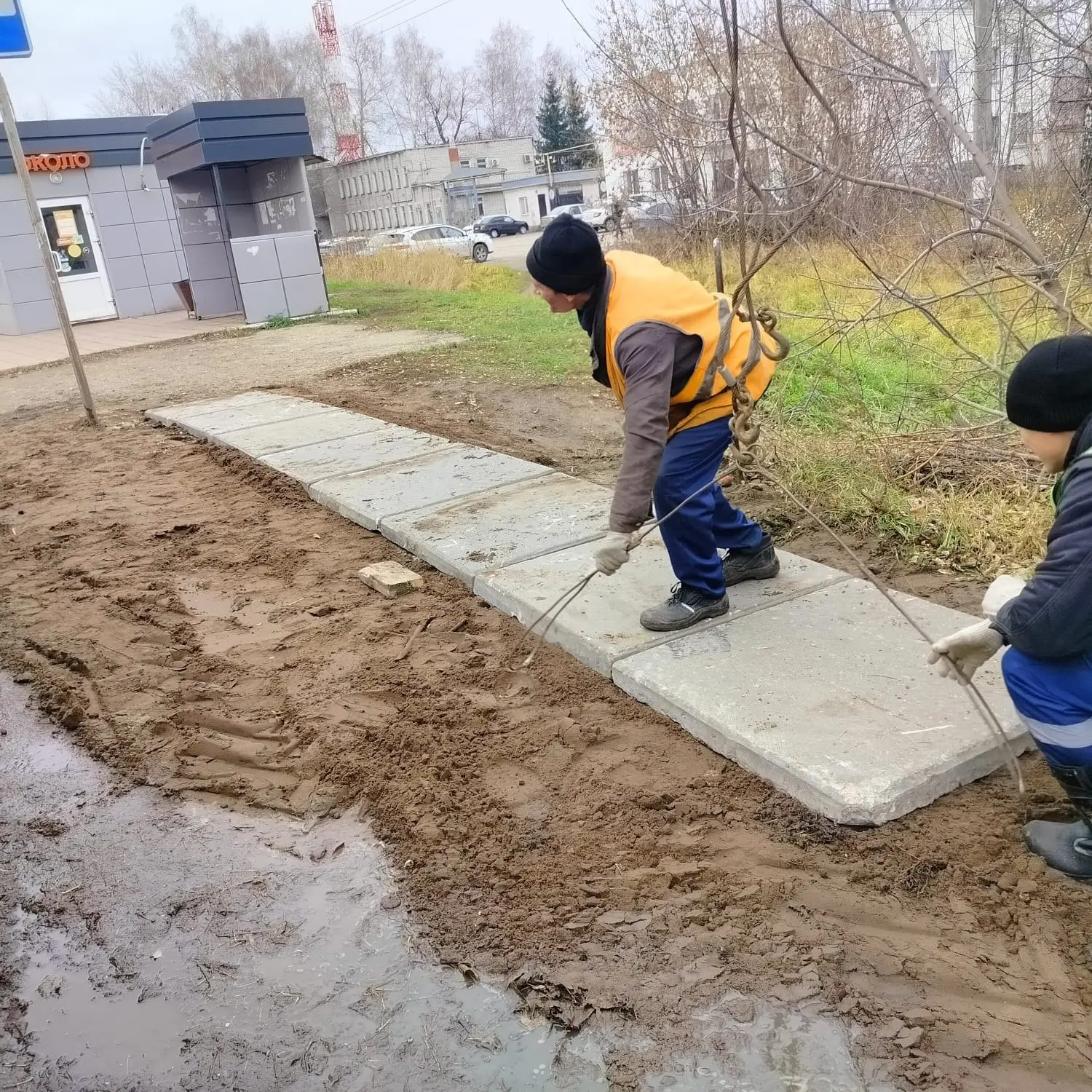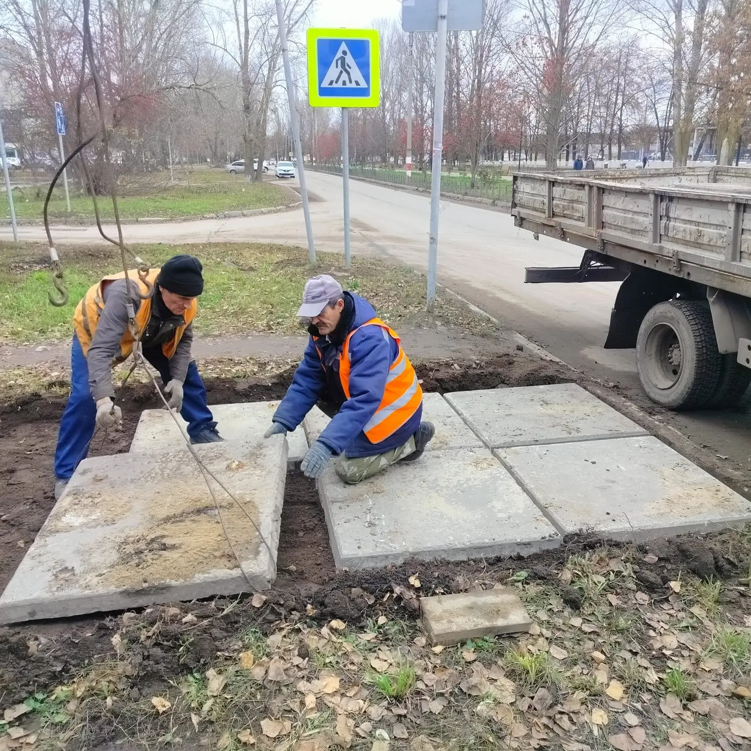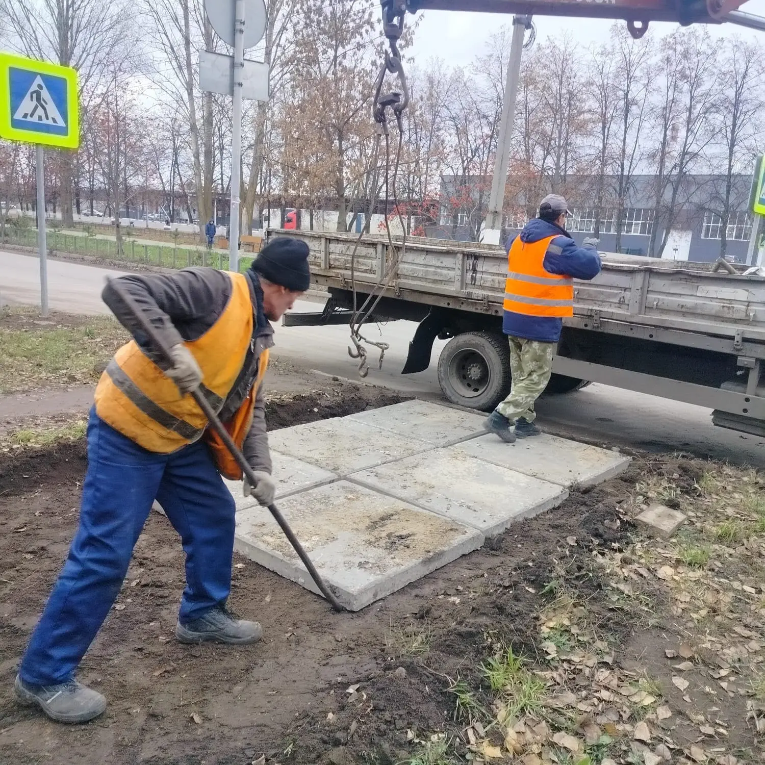 Ведём обустройство подходов к пешеходным переходам в разных частях города. Сегодня такие дорожки из плит уложены на улице Западной, 19-21 и улице Куйбышева, 27. Использованы плиты, демонтированные на проспекте Димитрова.
