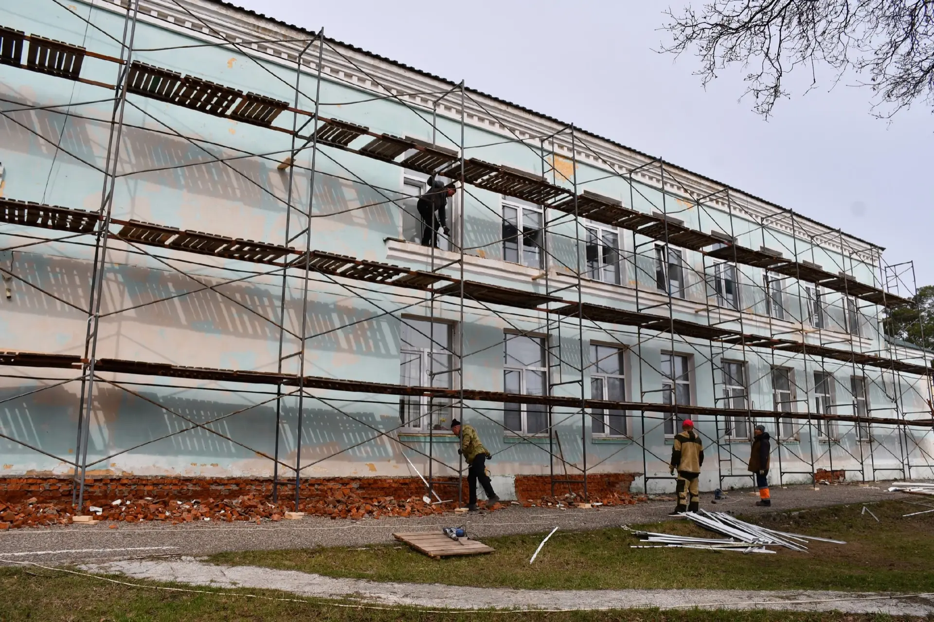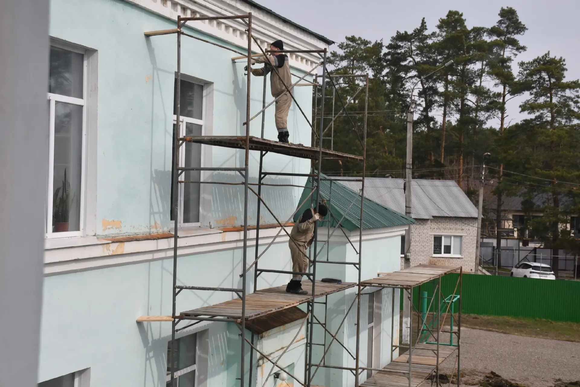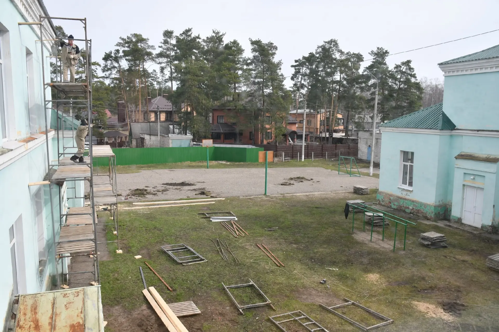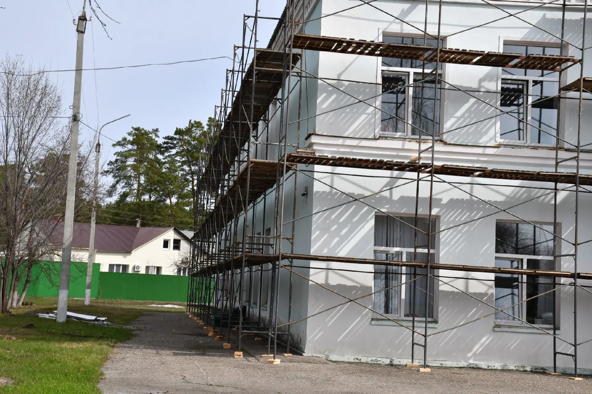Запланирован ремонт фасада, отмостки и напольного покрытия второго этажа. Подготовительные работы на фасаде школьного здания уже начаты, контракт заключён. По замене полов объявлены торги.