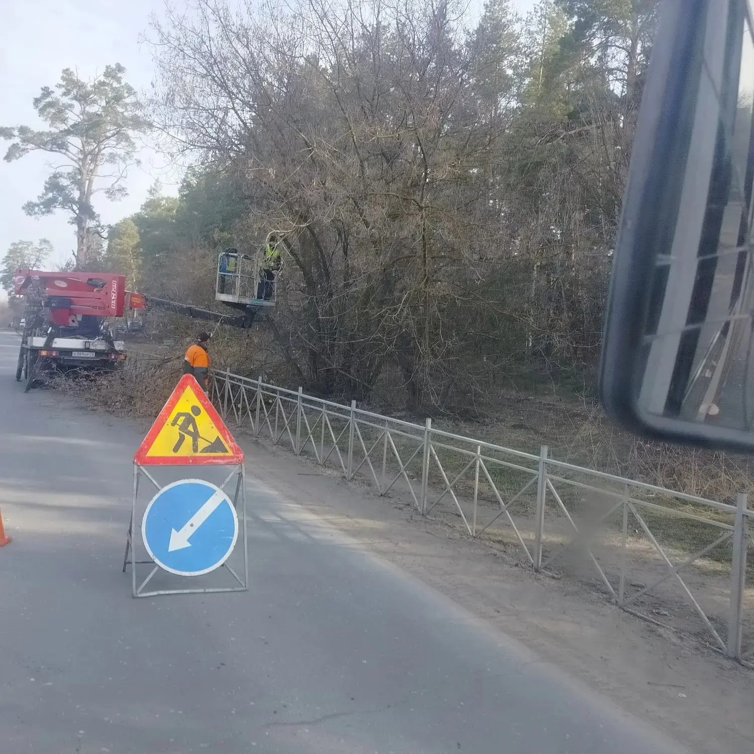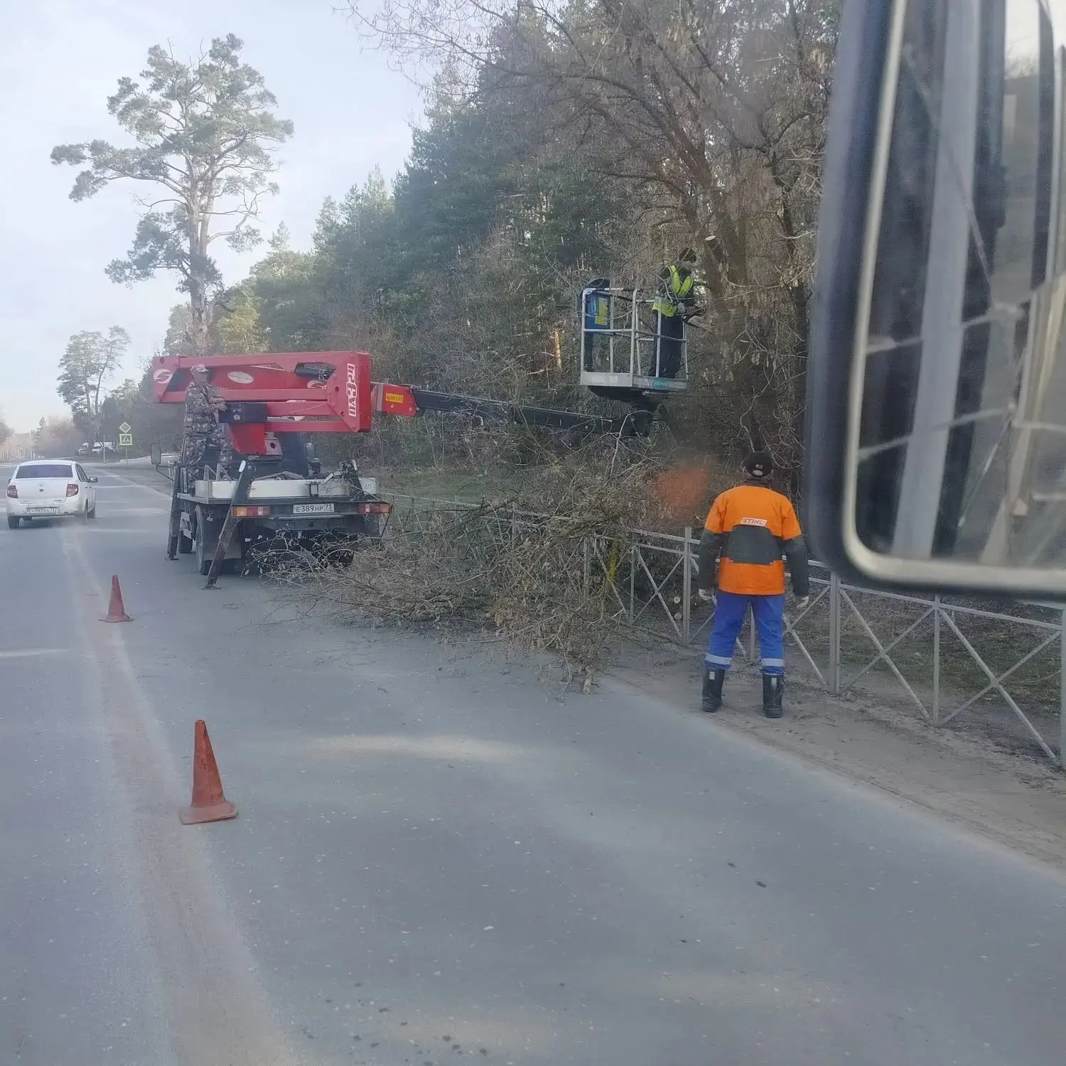 Дорожники обрезают и вывозят аварийные ветви деревьев, вырубают сухостой.