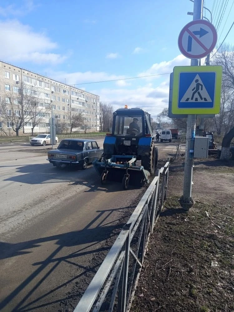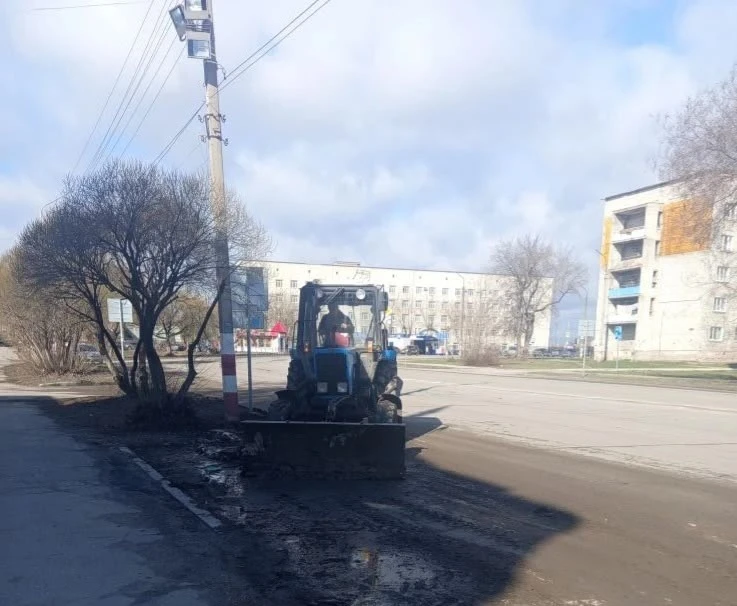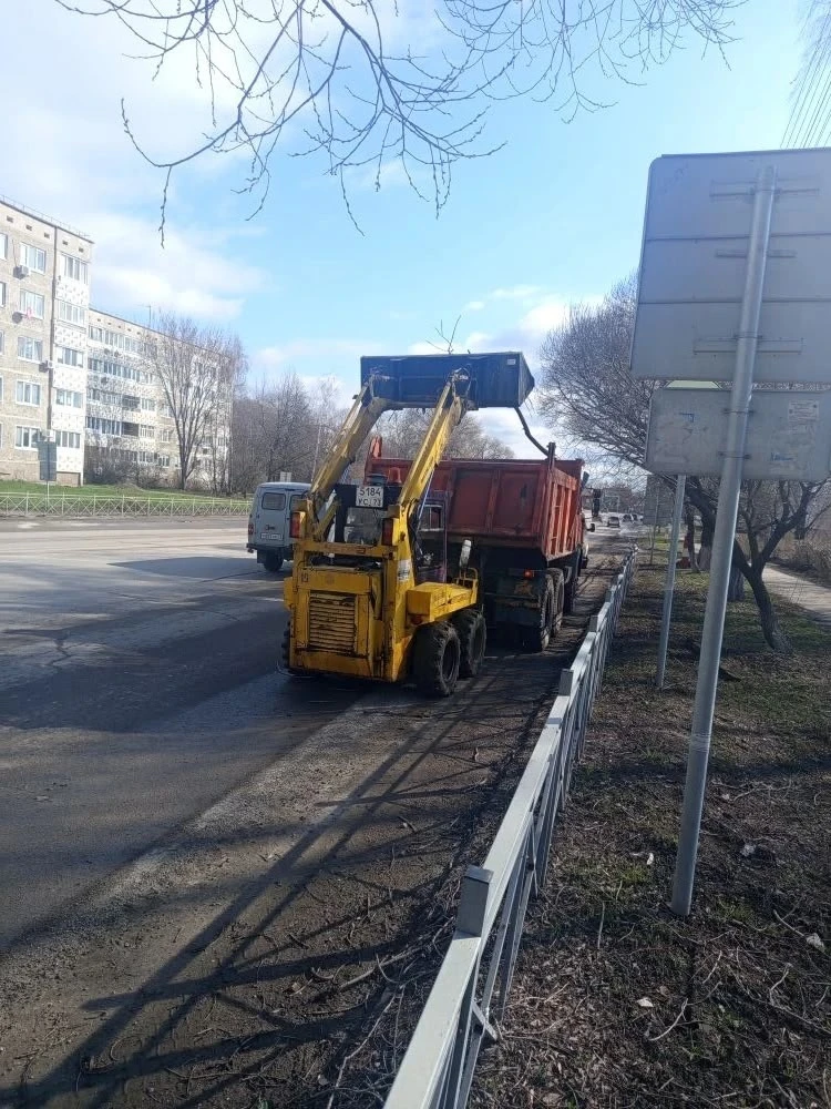Дорожники ведут очистку прибордюрного грунта на магистралях и путепроводах во всех районах города.