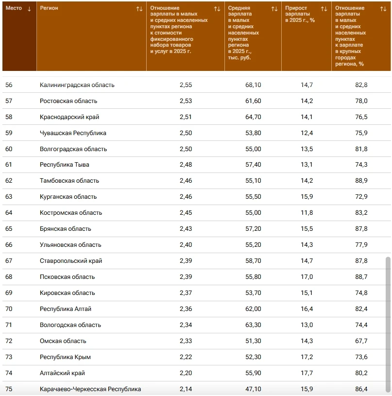 Ульяновская область заняла 66-ю строчку в ежегодном рейтинге РИА Новости по уровню зарплат в малых и средних населенных пунктах России. Исследование оценивало отношение чистой средней заработной платы к региональной стоимости фиксированного набора товаров и услуг по итогам 2025 года.