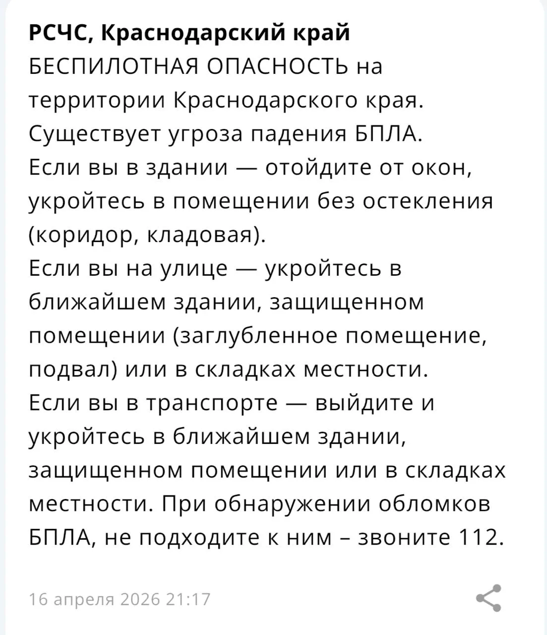 ❗️❗️Причерноморье Краснодарский край приготовиться к возможной атаке БПЛА от Анапа до Сочи