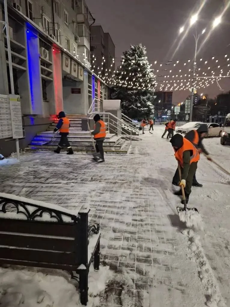 Работают более 600 специалистов и 29 спецмашин для уборки и обработки от гололедицы тротуаров, остановочных комплексов, подземных и надземных пешеходных переходов, внутриквартальных территорий и подходов к школам, детсадам, больницам и поликлиникам.